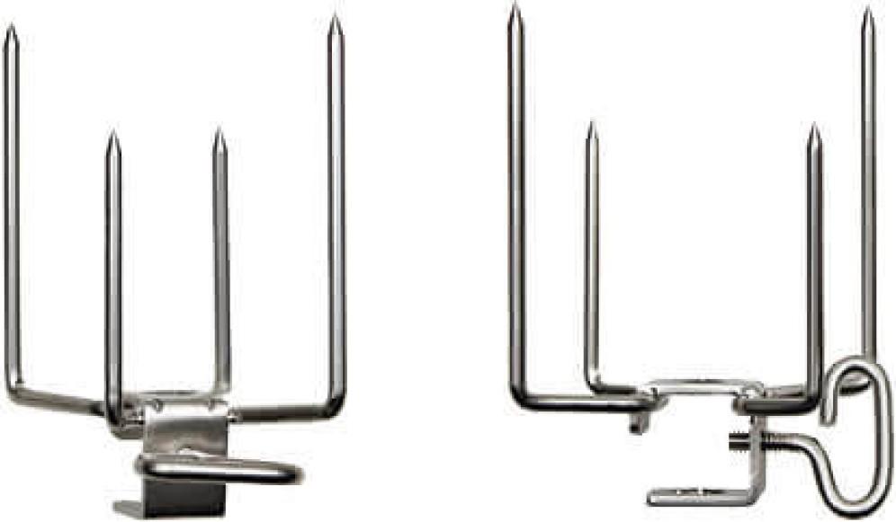 You can grill more than one piece of meat on the rotisserie at once with the Napoleon Commercial Quality Rotisserie Forks. They come with two 4-pronged forks that slide easily to hold your meat in place and thumb screws to hold the forks on the spit. These Rotisserie Forks are made entirely of stainless steel, cleaning easily after use. Replacement forks for and rotisserie with 12mm hex rod or 8mm square rods.