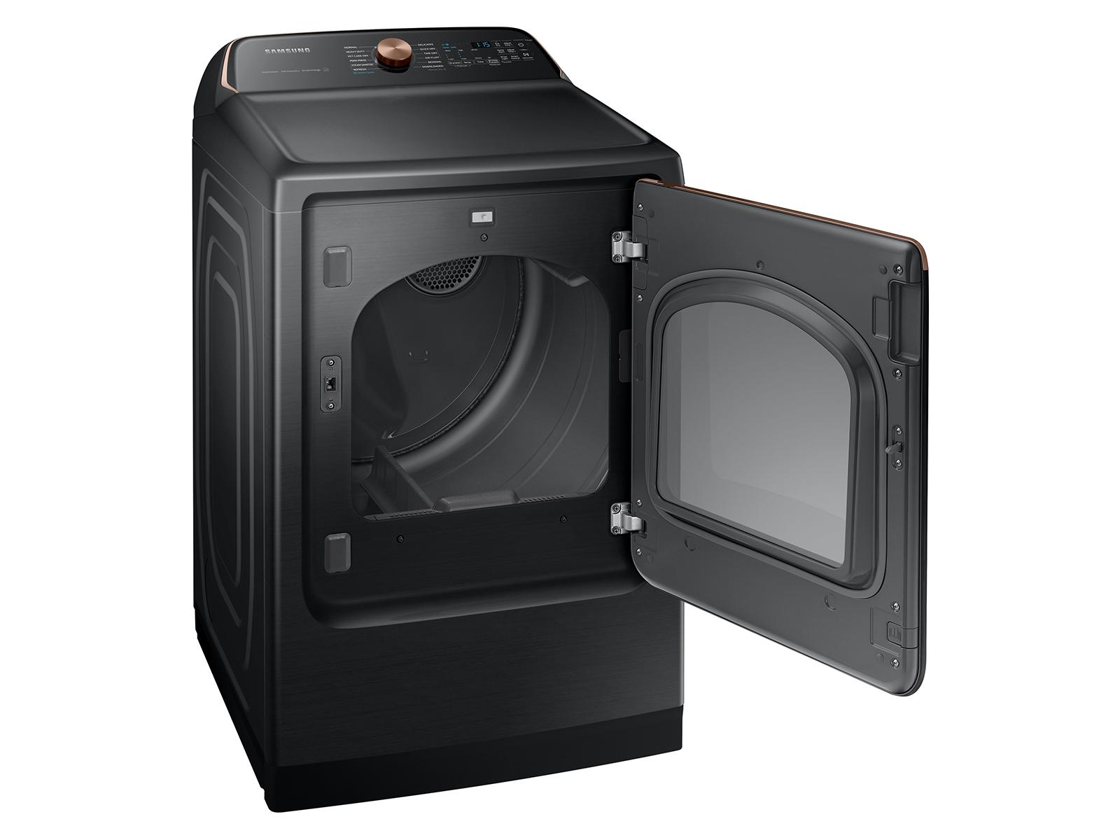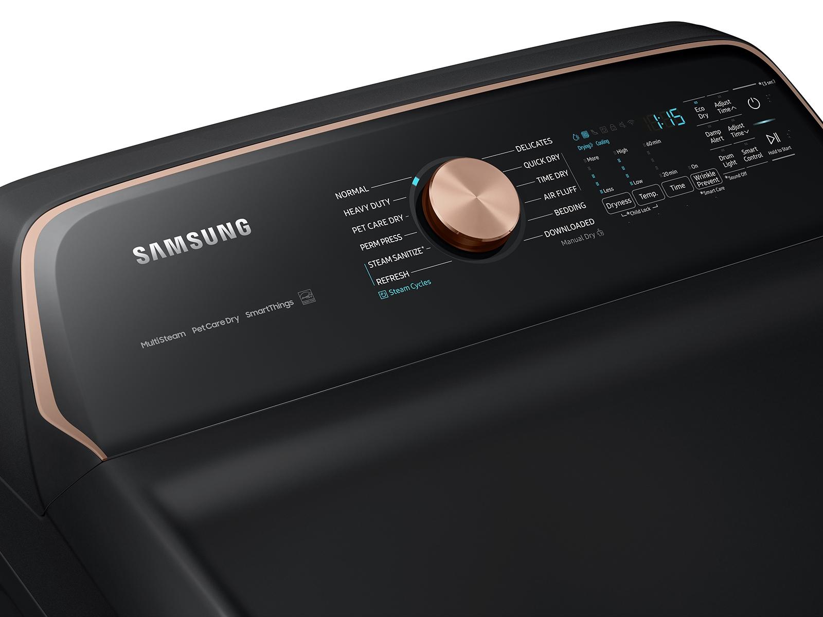 The brand Samsung DVG54CG7550V is a 27-inch front load gas dryer finished in modern Mystic Steel, featuring SmartThings Wi‑Fi connectivity for remote control and notifications. It includes a Vent Sensor™ that detects vent restrictions for improved safety and performance, and a steam refresh cycle to reduce odors and wrinkles without re-washing. Additional features include Sanitize cycle certified to eliminate 99.9% of germs, Energy Saver mode, and Dry Level and Dry Time options for personalized drying results. With large-capacity and quiet operation, this dryer balances convenience and performance.