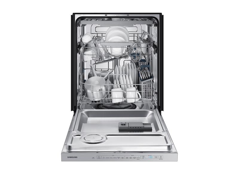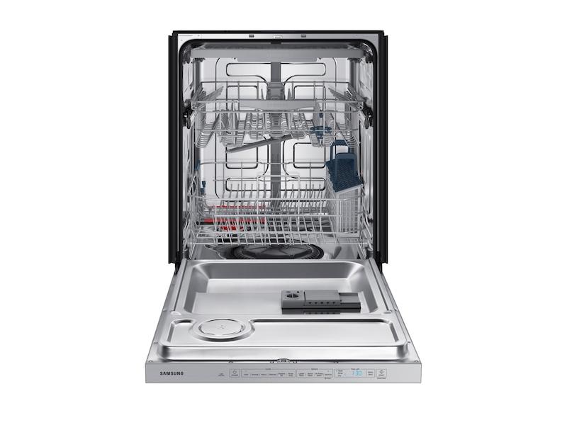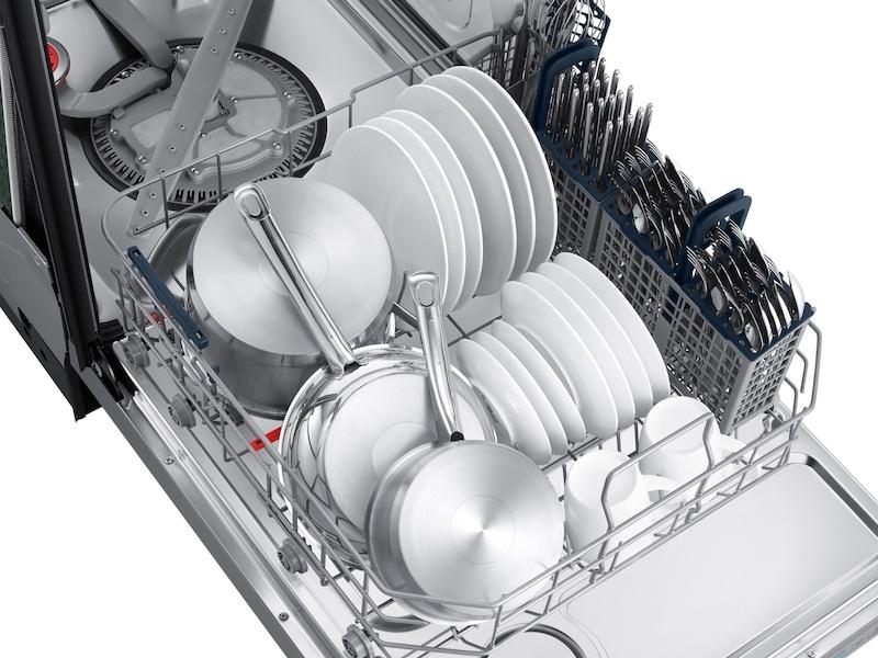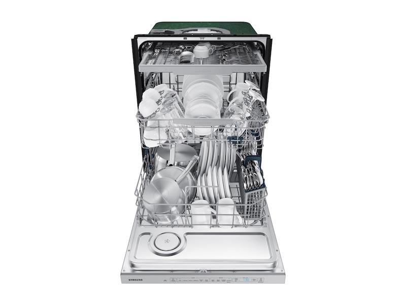 The SAMSUNG DW80R5060US 24" Built-In Dishwasher with StormWash™, AutoRelease™ Door, and 3rd Rack - Fingerprint Resistant Stainless Steel combines advanced cleaning technology with user-friendly features. Its StormWash™ system utilizes powerful rotating spray jets to clean at every angle, effectively removing tough-to-reach food residues without the need for pre-rinsing. The AutoRelease™ door automatically opens at the end of the cycle to circulate air and improve drying performance. With a third rack for utensils and an adjustable upper rack, this dishwasher offers flexible loading options to accommodate various dish sizes and shapes. Operating at a quiet 48 dBA, it ensures a peaceful kitchen environment. The unit provides 6 wash cycles and 6 options, including a Sanitize cycle that eliminates 99.999% of bacteria, and a Half-Load option for smaller loads. Its fingerprint-resistant stainless steel finish maintains a clean, modern look, while the digital touch controls offer intuitive operation. With a 15 place setting capacity and ENERGY STAR® certification, this dishwasher delivers both efficiency and performance.