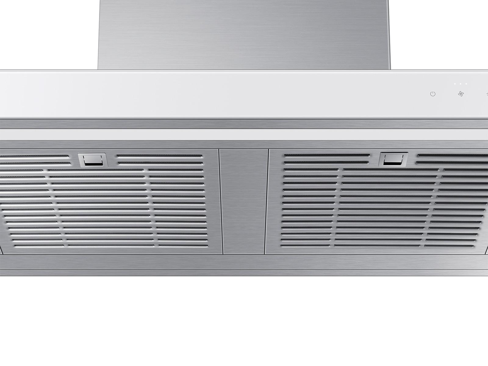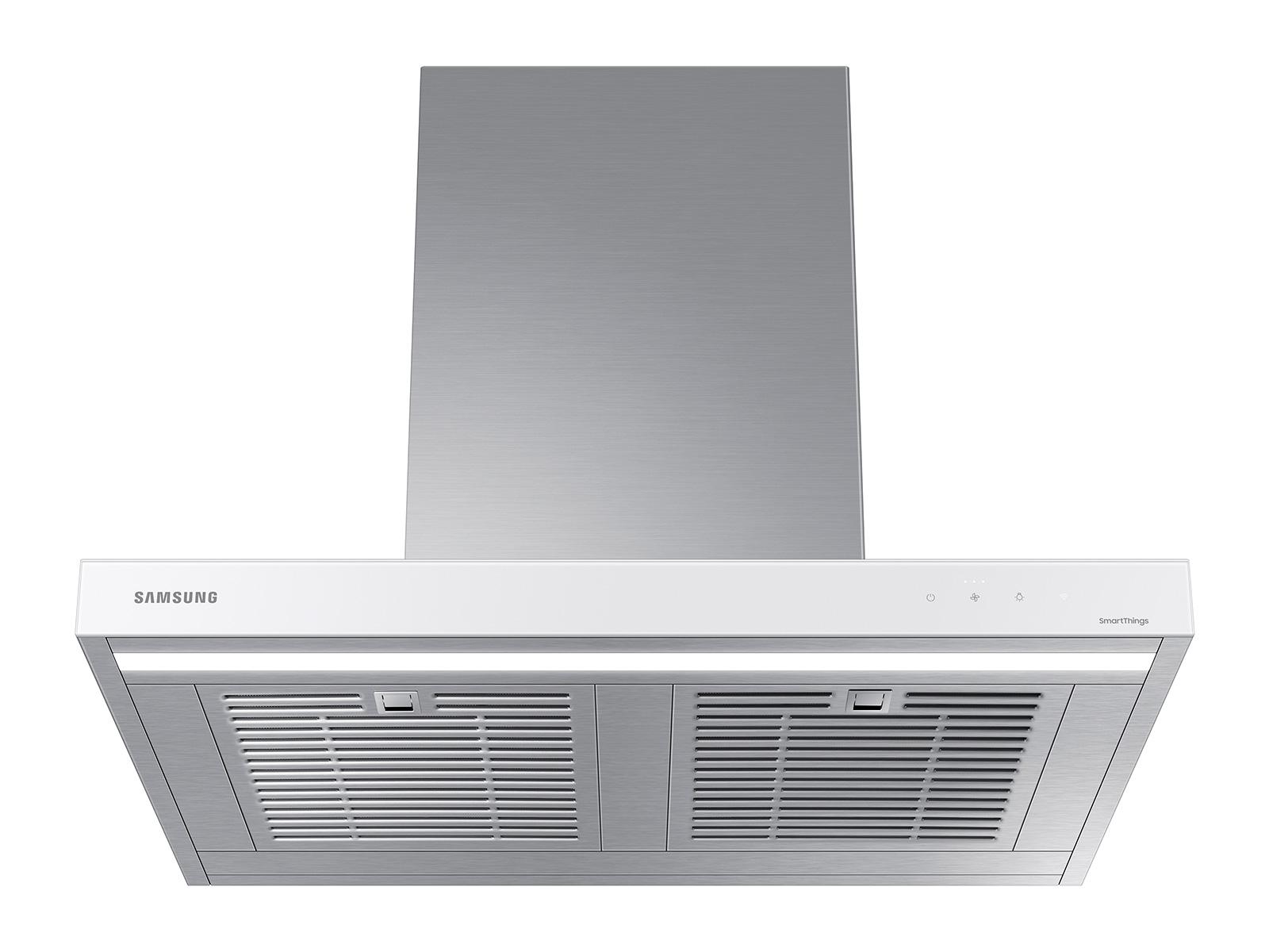 The Samsung NK30CB600W12 combines elegant design with powerful performance in this Bespoke Smart Wall Mount Hood. Designed to seamlessly integrate with your kitchen, this 30-inch hood features a powerful 600 CFM ventilation system to effectively remove smoke, odors, and grease while cooking. With Wi-Fi connectivity, you can monitor and control the hood remotely using the SmartThings App, making it a smart companion in any connected kitchen. The LED lighting brightens your cooktop, while the touch control panel offers a smooth, intuitive interface. Finished in a clean white Bespoke style, it adds a custom, upscale look to your space while delivering efficient air circulation and whisper-quiet performance.