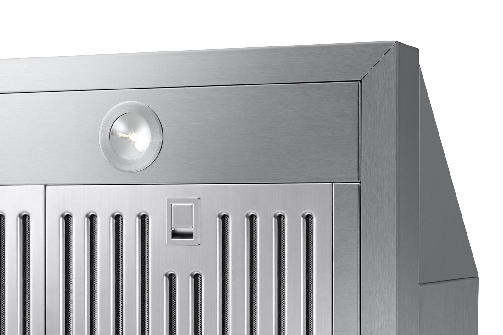 The brand Samsung NK36N7000US offers a high-performance 36″ under cabinet range hood combining efficient odor control and stylish design. With a robust 400 CFM ventilation system, it quickly removes cooking fumes and grease. The stainless steel housing is both durable and easy to clean, while dual energy-efficient LED lights illuminate your cooktop. The intuitive two-speed push-button control allows simple operation, and washable aluminum mesh filters ensure hassle-free maintenance. Designed to mount under standard cabinets, the NK36N7000US provides strong functionality and a refined stainless finish to elevate any kitchen.