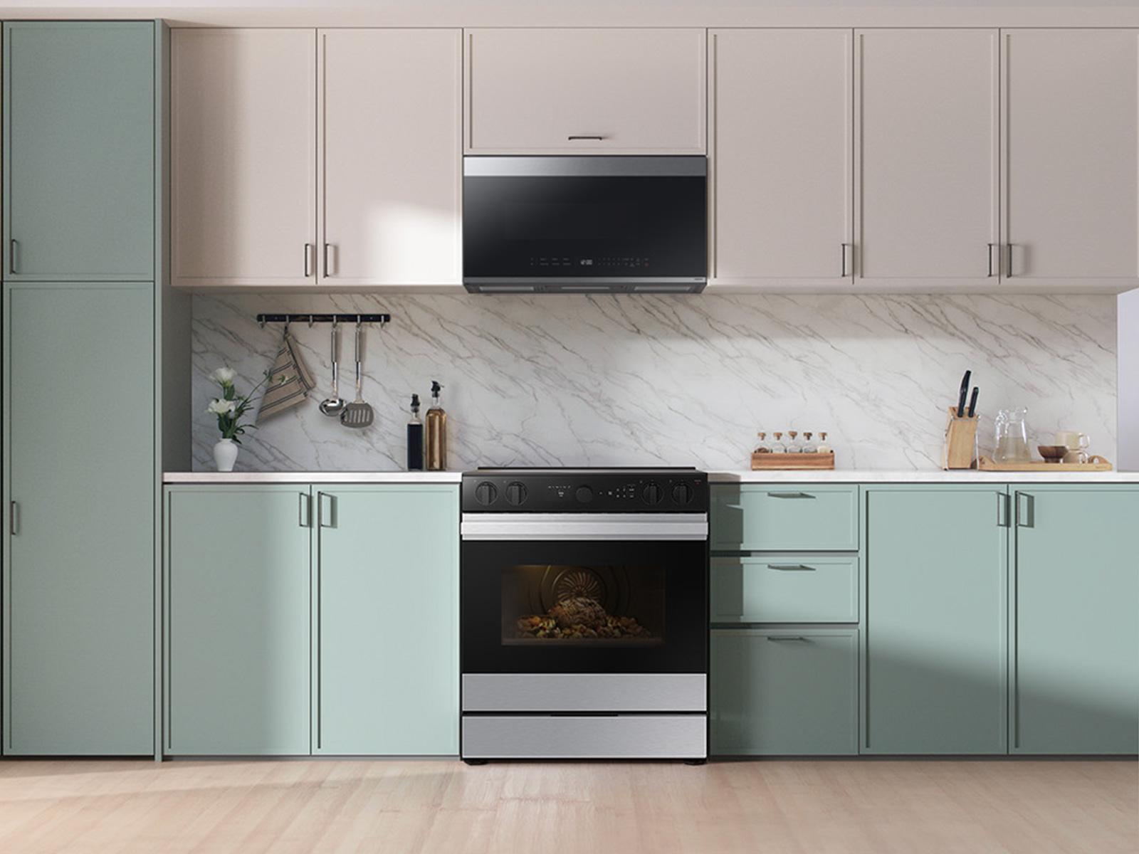 Bespoke Slide-In Electric Ranges are designed to elevate how you cook and reimagine everyday routines with connectivity and convenience.