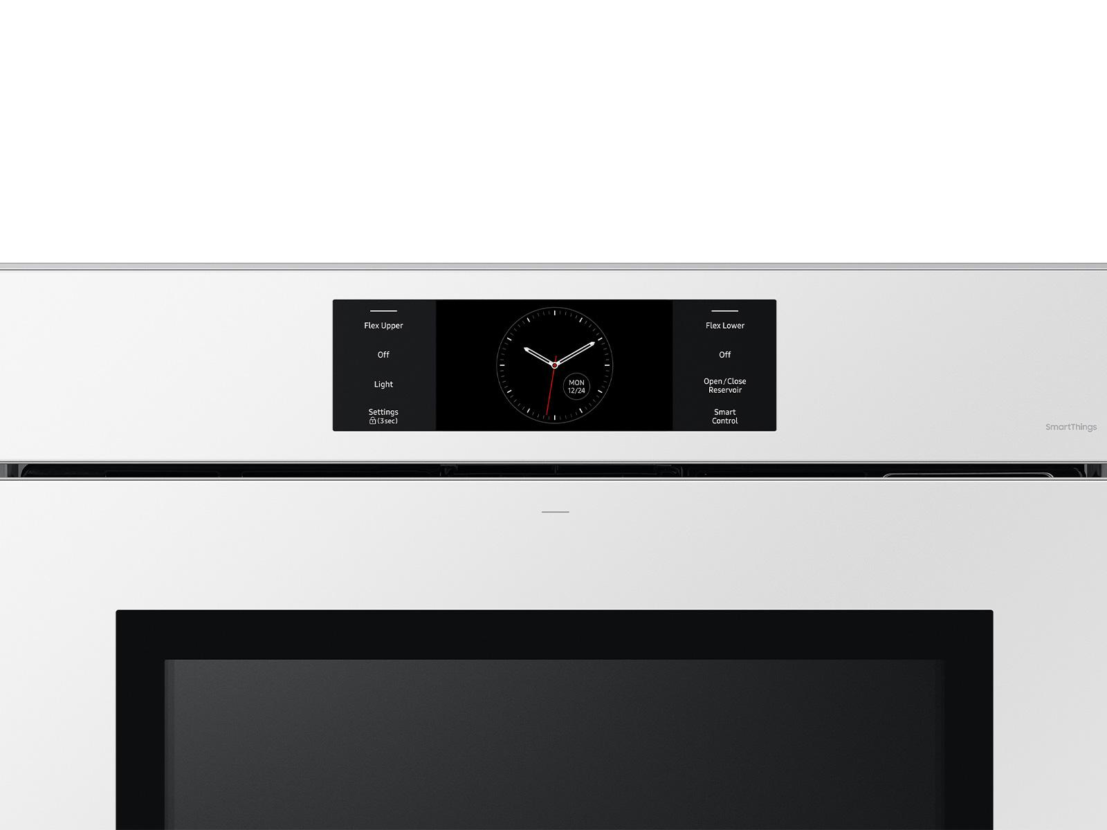 Your kitchen's command center The 7" AI Home LCD touchscreen makes cooking easy, providing recipe recommendations based on the ingredients detected in your oven. Connect with SmartThings to preheat and monitor your oven from anywhere. AI Home LCD Display on Wall Ovens (NV51CB700D, NV51CB700S) accesses Recipe recommendations based on deep learning models. A Wi-Fi connection and a Samsung account are required. To access your AI recipe recommendations, click on the 'Food' service within the SmartThings App in the AI Home menu.