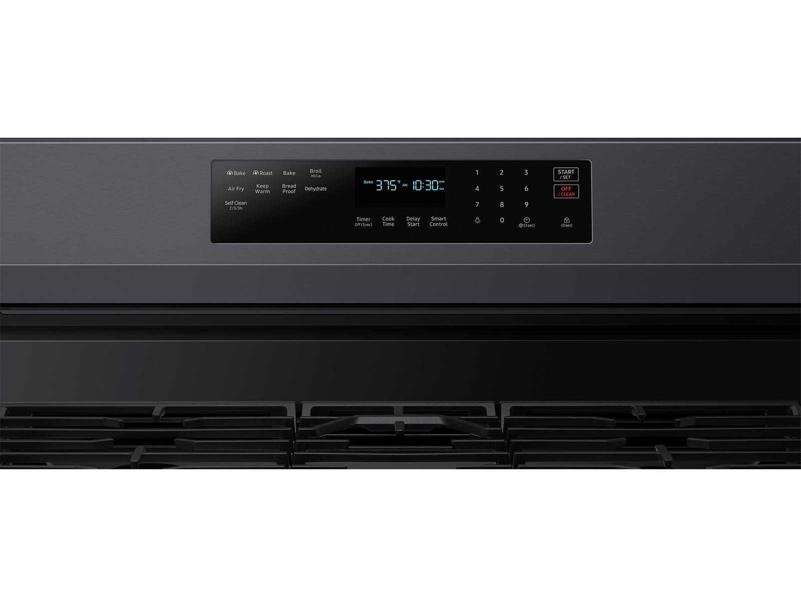 The Samsung NX60A6711SG gas range redefines home cooking with a combination of advanced features and stunning design. It boasts a spacious 6.0 cu. ft. oven that handles everything from holiday roasts to weeknight baking, enhanced with Convection technology for even heat distribution and Air Fry for crispy, healthier meals without preheating. The five-burner cooktop includes a powerful 17,000 BTU burner and a center oval burner for oversized pans or griddles. With Wi-Fi connectivity, you can monitor and control your oven from your smartphone. The Black Stainless Steel exterior resists fingerprints and adds a luxurious, modern look to your kitchen. Additional features like a self-cleaning system and a convenient storage drawer make this range an ideal choice for busy families and culinary enthusiasts.