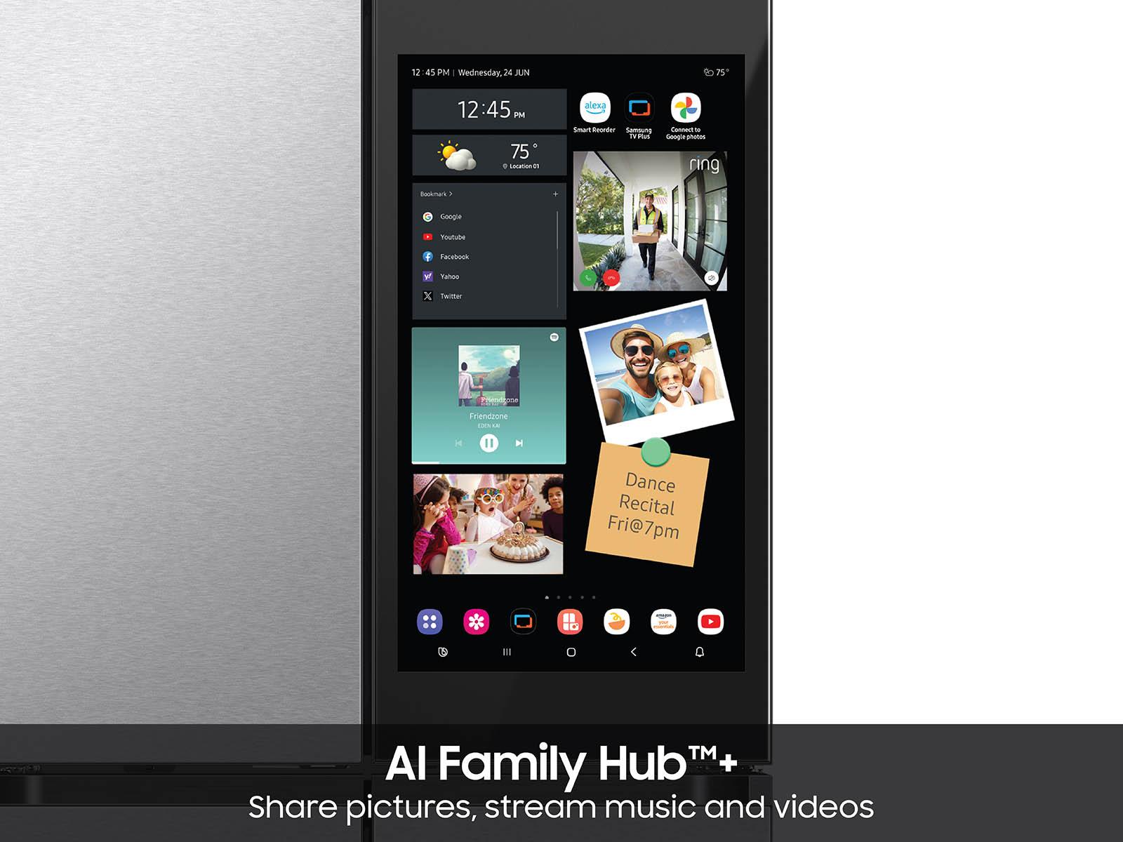 Watch, listen, and cook with AI Family Hub(TM)+ - the entertainment hub with 32" touchscreen built into your fridge.