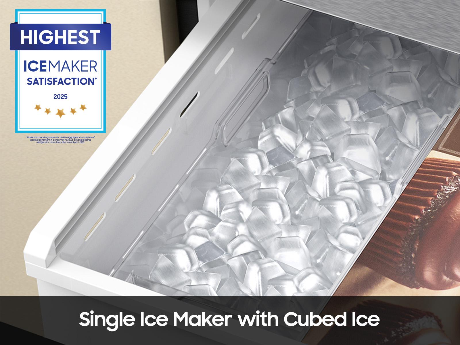 Make sure you have plenty of ice with the Single Ice Maker, which automatically makes and stores cubed ice. - Control your fridge from anywhere