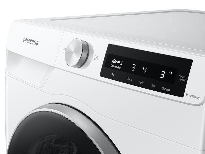 The Samsung WW25B6900AW is a 2.5 cu. ft. compact front load washer designed to deliver powerful performance in a space-saving design. Equipped with AI Smart Dial, it learns and recommends your preferred wash cycles, simplifying the control panel for ease of use. The Super Speed Wash feature allows you to wash a full load in just 30 minutes without compromising on cleaning performance. With Wi-Fi connectivity, you can remotely start, schedule, and receive end-of-cycle alerts through the SmartThings app. The washer offers 24 wash cycles and 13 options, including steam cleaning to gently remove stains and sanitize clothes. Its Vibration Reduction Technology+ ensures quiet operation, while the Swirl+ Drum Interior provides gentle fabric care. The Self Clean+ feature keeps the drum fresh by eliminating 99% of bacteria. With a maximum spin speed of 1,400 RPM, internal water heater, and ENERGY STAR® Most Efficient rating, this washer combines efficiency, convenience, and advanced technology in a sleek white finish.