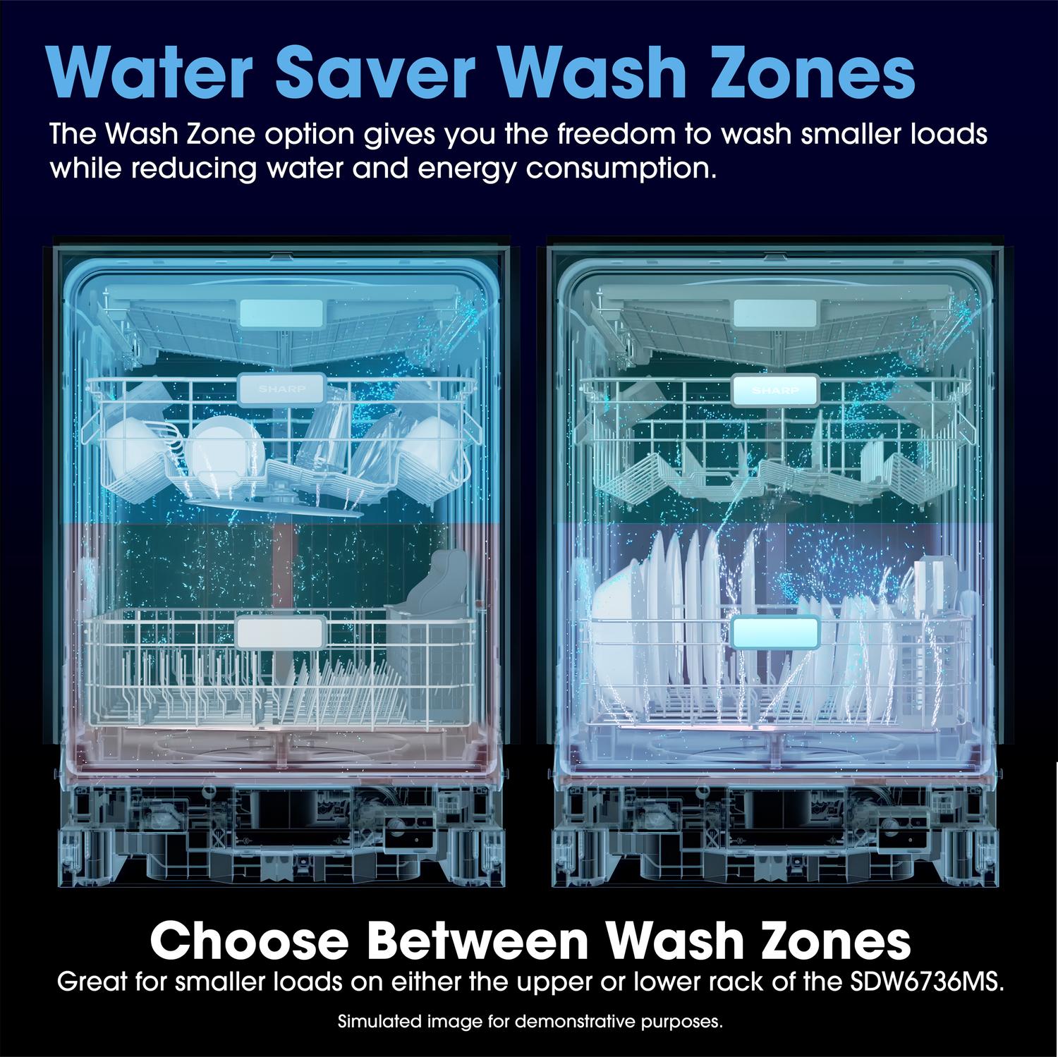 The responsive washing cycles work with smart sensors to automatically optimize performance. Forgot to soak the casserole dish? Place your most challenging cookware above the Power Wash sprayer for extra scrubbing power. The traditional, heated dry option of the SDW6736MS delivers the speed and performance you expect and minimizes hand-drying. The Wash Zone option gives you the freedom to use the upper or lower rack depending on the amount of dishes you want to wash.