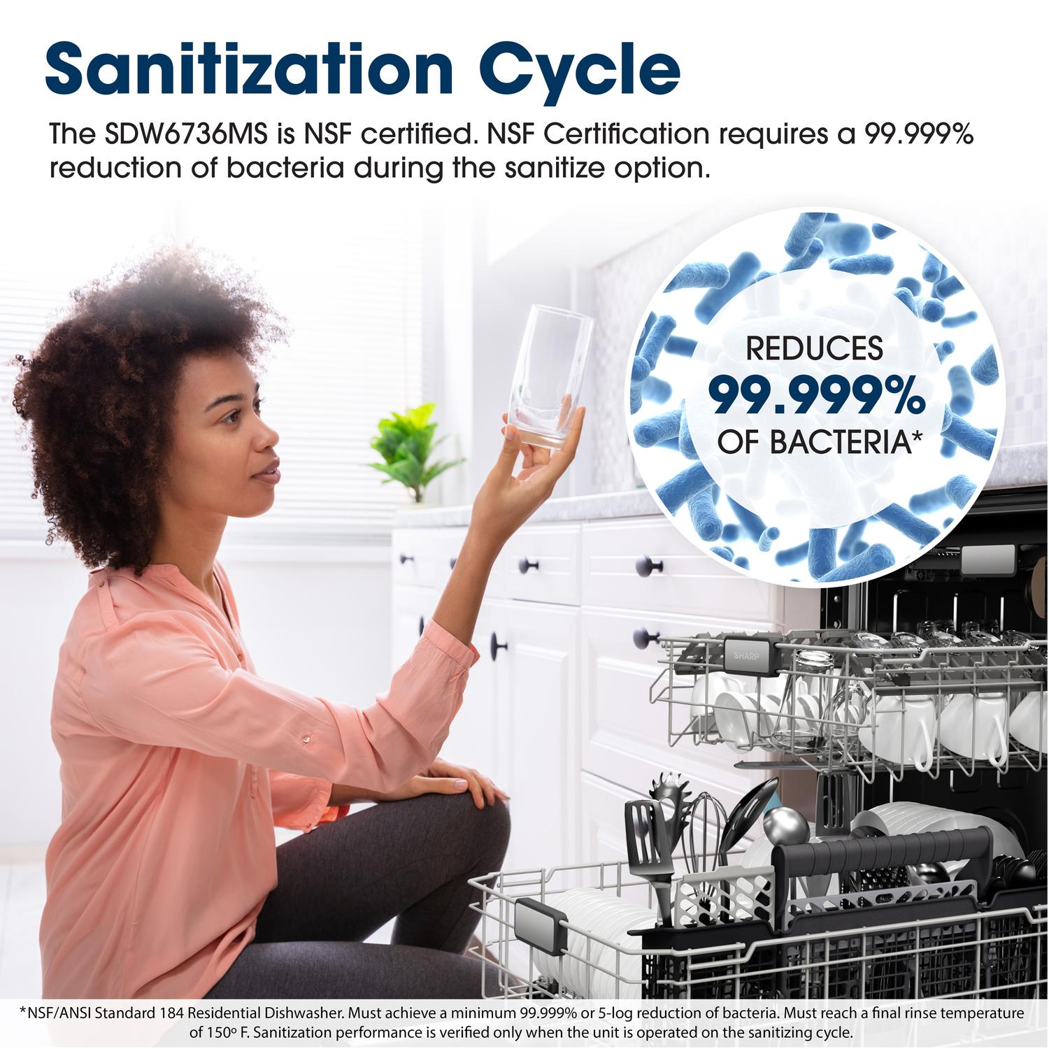 Classic and elegant, the SDW6736MS offers luxuries inside and out. The brilliant, stainless steel finish is easy to clean, fingerprint resistant and complements other stainless steel appliances, while the hidden control panel helps minimize distractions.