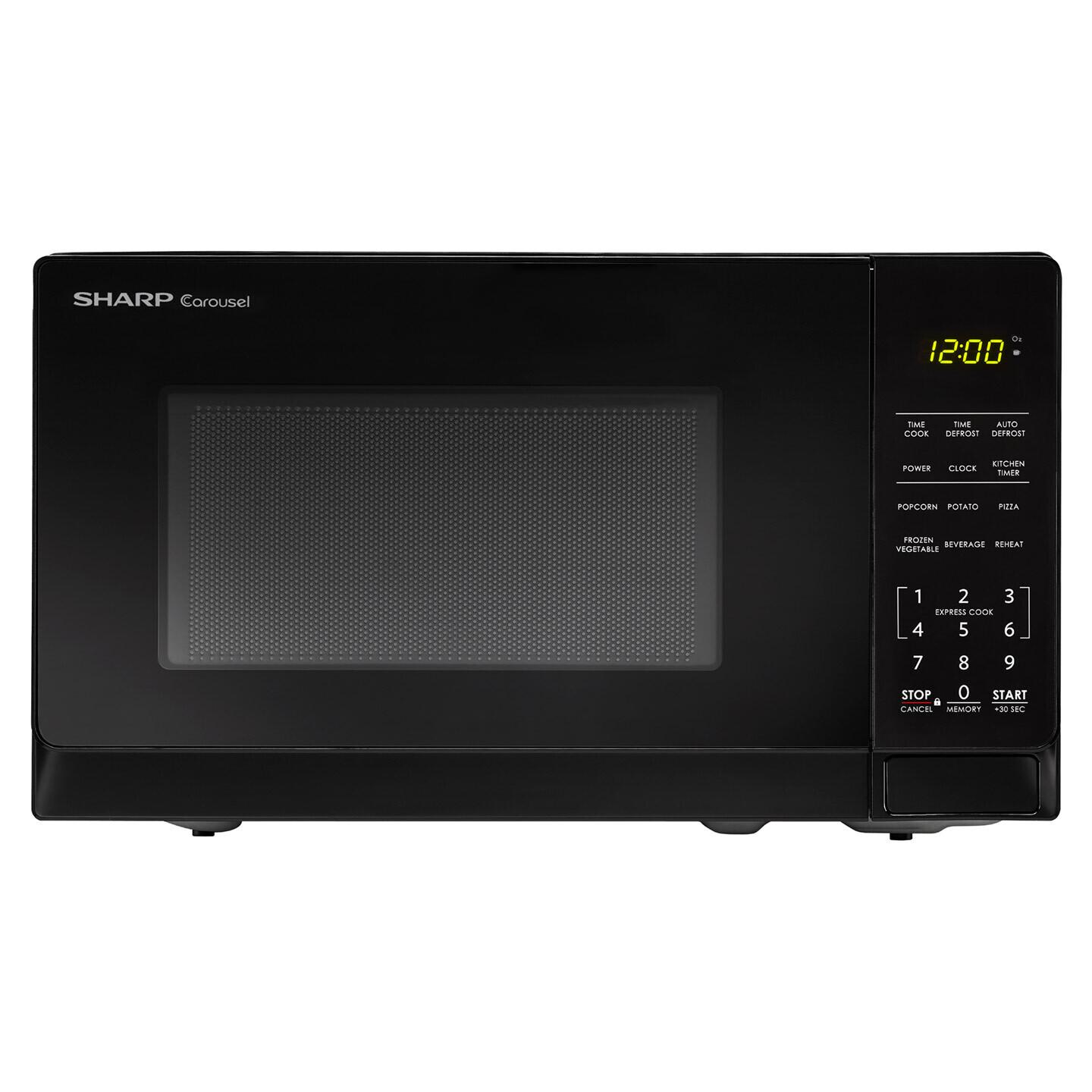The compact 0.7 cu. ft. Sharp SMC0710BB black Carousel microwave is ideal for snacks, beverages, frozen meals and reheating. Its small footprint fits just about anywhere, while its roomy 10\" Carousel(R) turntable is big enough for a full-size dinner plate. Glossy black finish with scratch-resistant glass door complements your style.