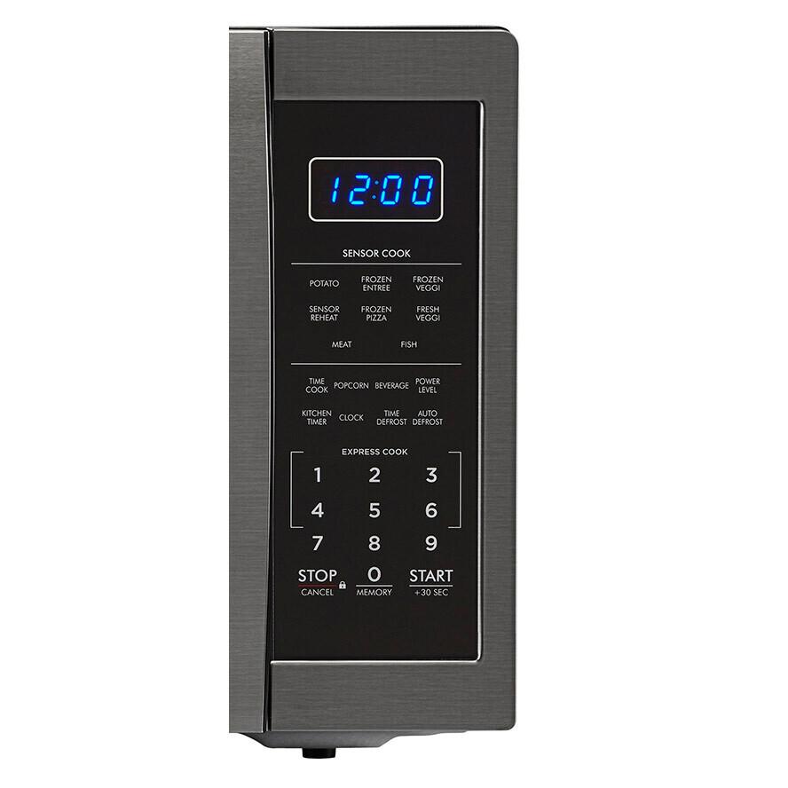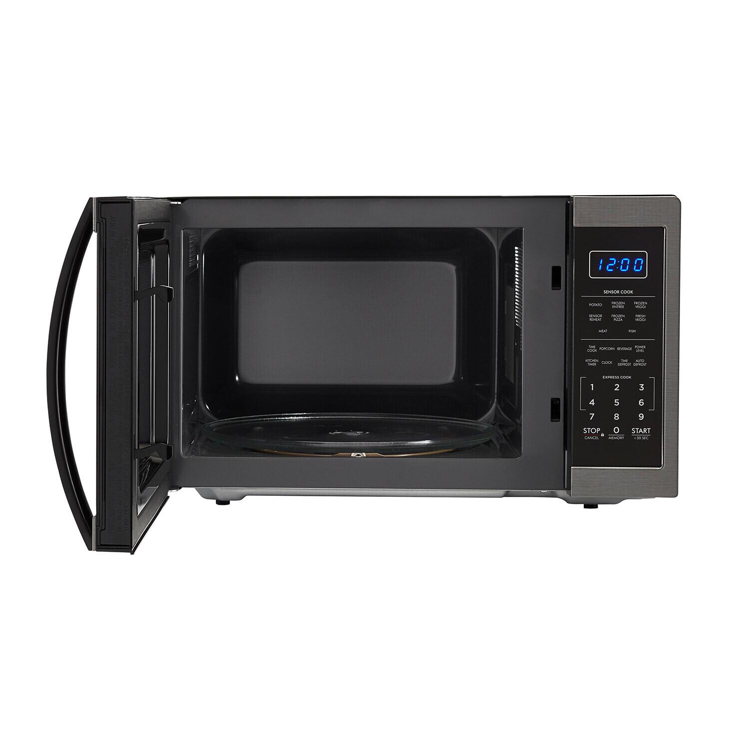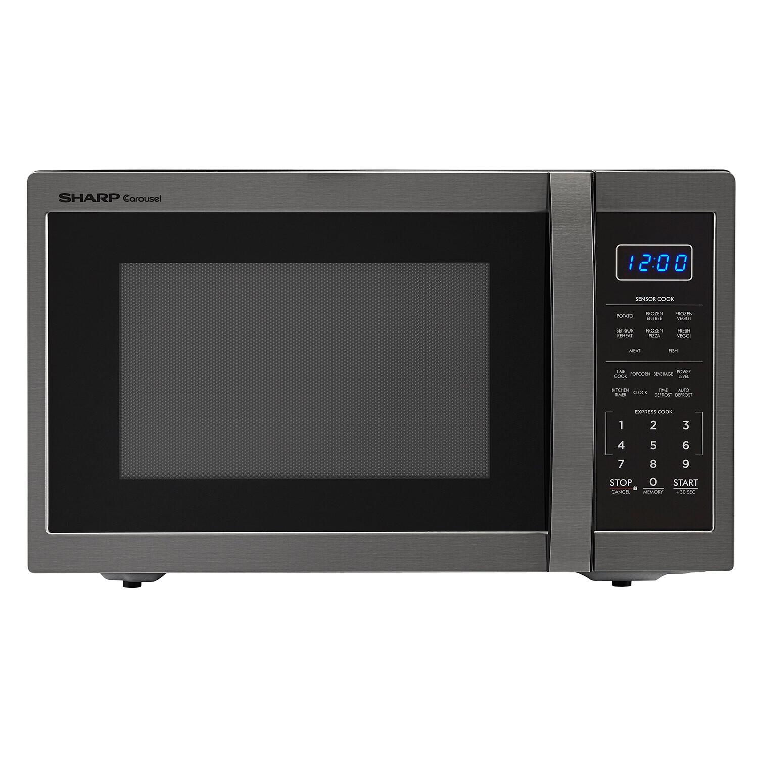 Sharp's Black Stainless Microwave Oven's rich, elegant finish is an absolute show-stopper for your dream kitchen. As a complimentary appliance in a black stainless kitchen, or a stunning design statement in any kitchen. The elegant, grey interior complements the black stainless finish and features an energy efficient, bright white, LED interior light. The Sharp Black Stainless Microwave Oven allows you to showcase your design savvy and create a premium kitchen that flows with your lifestyle.\n The roomy, family-sized 1.4 cu. ft. microwave has a bigger capacity to cook and reheat larger portions of food. 1100 watts of power give you rapid reheating and fast cooking. The easy-to-clean black stainless steel finish complements your style.