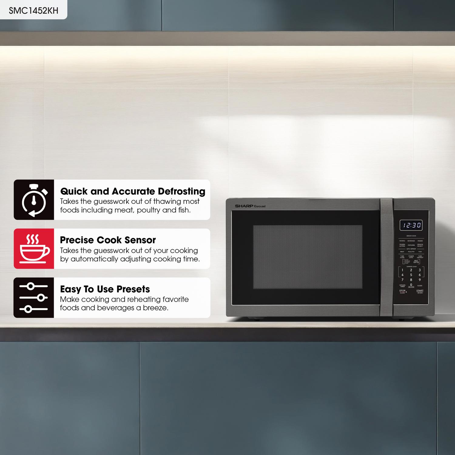 The Sharp(R) SMC1452KH, Family-Size, 1.4 cu. ft., 1100 Watt Microwave Oven in Black Stainless Steel is designed for the whole family with a bigger capacity to cook and reheat larger portions than our compact ovens.