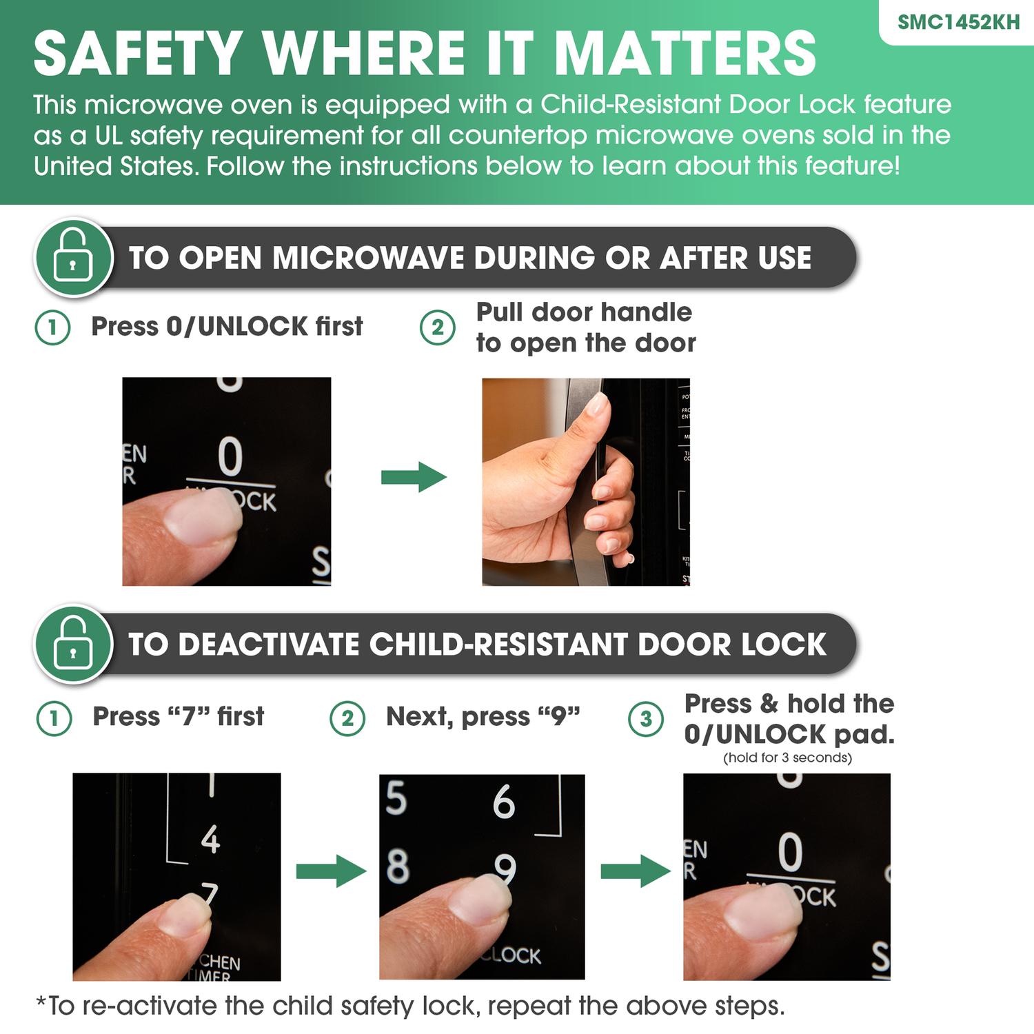 The SMC1452KH is packed with thoughtful and innovative features. Precise Cook sensor technology takes the guesswork out of defrosting and cooking, and makes reheating food and beverages a breeze. The Melt and Soften controls of the SMC1452KH will melt cheese and even soften ice cream. Express Cook offers One-Touch cooking for up to six minutes. The +30 key can be used for an instant start and to add time during cooking.