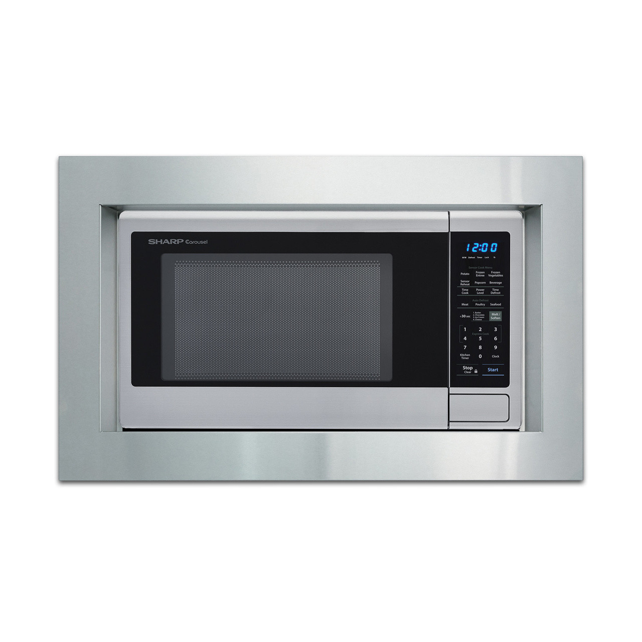 The XL Family-Sized 1.8 cu. ft. SMC1842CS model is a perfect option for built-in and fits nicely on a countertop kitchen display. With its premium blue LED display, 15" Carousel(R) turntable, and convenient Soften function, this fully featured Stainless Steel Countertop Microwave Oven is sure to impress. Sharp also offers its 1.8 cu. ft. 1100W countertop microwave ovens in stainless steel and stainless steel (with black mirror door) finishes to match your kitchen.