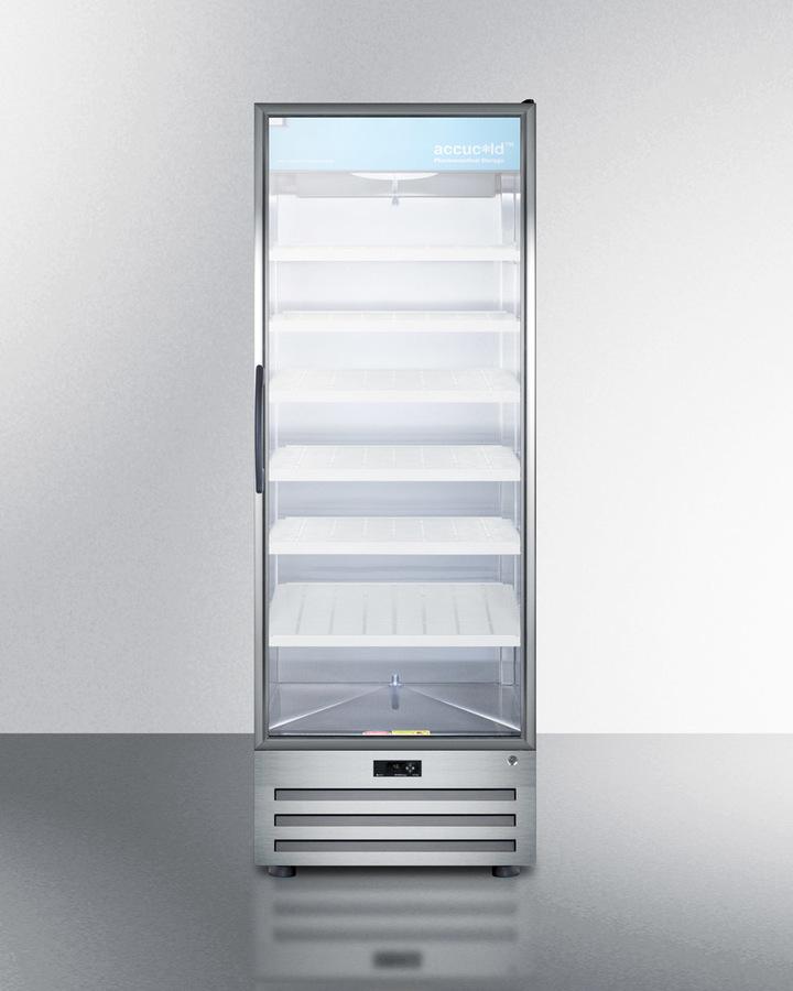 Accucold by Summit Appliance carries a quality line of pharmaceutical refrigeration for temperature-safe storage of sensitive material. The ACR1718RH offers 17 cu.ft. of interior storage, with six adjustable cantilevered shelves to accommodate a variety of sizes. The shelves are constructed from heavy duty recycled molded plastic for lasting durability. As an alternative, we offer a separate full-extension drawer in a durable aluminum finish that can be ordered with this unit. Fan-forced cooling ensures cold air is evenly distributed throughout the stainless steel interior. This model uses automatic defrost operation for easy user maintenance, with audible high/low temperature alarms to warn if the unit goes out of range. A digital thermostat offers intuitive and reliable temperature control. Designed for optimum pharmaceutical storage, the temperature range is 2 C to 8 C. The ACR1718RH comes with a stainless steel cabinet with a locking tempered self-closing glass door, an ideal time-saving feature for busy staffs that helps to ensure items aren t accidentally exposed to room temperature. LED lighting in the door panel allows all stored items to be fully displayed. A hidden light switch is conveniently located towards the top of the unit, letting staff turn the lights off during off hours. This unit features a high efficiency compressor and maintenance-free rear condenser. A factory installed keyed lock offers added security in preventing unsupervised access to sensitive materials. NOTE: This unit has a right hand door swing and is not field reversible. For a left hand door swing, see the ACR1718LH. NOTE: Accucold refrigerators are purpose-built to the support meeting the current CDC (Centers for Disease Control) guidelines for the storage of vaccines. At this time, Accucold refrigerators have not been evaluated to the new NSF 456 standard. As referenced in the current Vaccine Storage and Handling Toolkit, these units incorporate microprocessor controls and forced air circulation for stable operation between 2 and 8 C. For additional temperature assurance, the CDC recommends a calibrated digital data logger (DDL), which can be added with the factory-installed option DL2B or addition of the DL2BKit accessory.