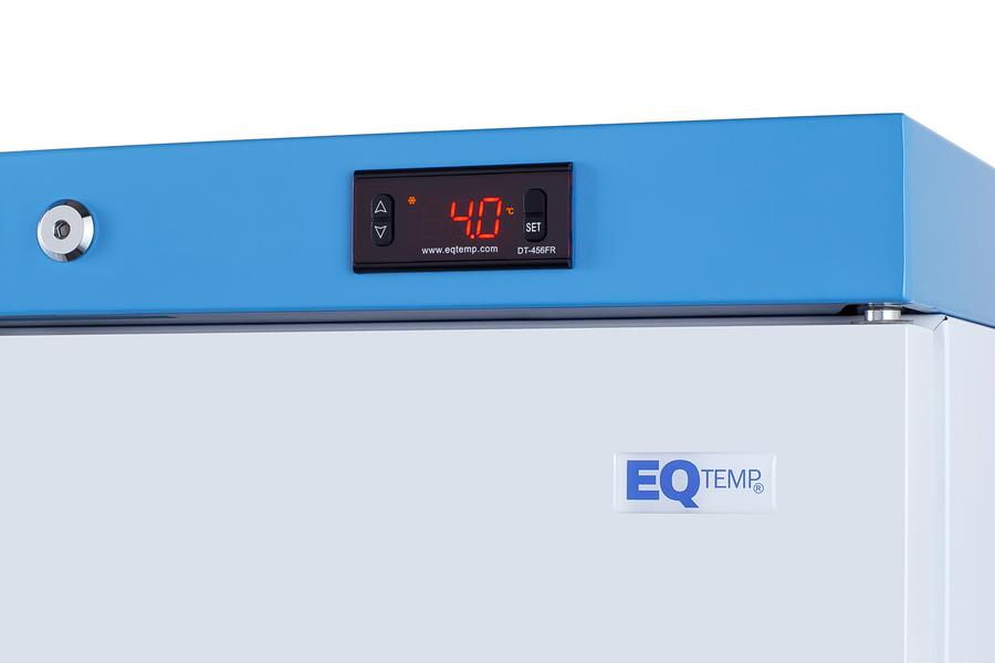 EQTemp introduces a new series of NSF/ANSI 456 certified medical refrigeration designed to store a variety of materials in healthcare facilities. Model ACR51WNSF456 is an upright 3.88 cu.ft. all-refrigerator. It features a clean white exterior and a blue-accented control panel. The solid door is equipped with a self-closing mechanism to help protect stored items from being overexposed to room temperature. A factory-installed lock offers added security, and the hospital-grade cord with a 'green dot' plug ensures a secure connection for high-traffic areas. This unit features a front-breathing design for safe built-in installation under counters. The fully finished cabinet also allows freestanding use. The ACR51WNSF456 includes an external readout of the interior temperature, as well as the high/low temperature as required for data records. The buffered temperature probe is encased in a bottle filled with glass beads for improved accuracy and calibrated to NIST standards in our in-house ISO/IEC 17025:2017 certified laboratory. The digital temperature controls allow you to set the interior between 2 and 8 C. An audible alarm sounds if the temperature goes out of range. We also include a pre-installed 3/8" access port for users to add their own monitoring equipment if preferred. The interior includes one wire shelf in the center to hold the temperature probe, as well as additional adjustable shelves to accommodate different sizes. Internal LED lighting provides an efficient and convenient view. Automatic defrost reduces user maintenance and an internal fan ensures powerful temperature recovery after door openings. EQTemp's series of ACR refrigeration is certified to the NSF/ANSI 456 Vaccine Storage Standard. All models feature hydrocarbon refrigerant for a greener footprint. Additional sizes are available, as well as more advanced cold storage equipment purpose-built for laboratory and life science storage. Browse the full product line to explore our extensive selection. Note: EQTemp's ACR Series refrigerators are intended for a wide variety of healthcare storage applications. Storage of high-value vaccines, life science materials, and medical/clinical biologicals require a product offering tighter temperature control and/or alarms, monitoring, and backup. For these applications, browse Accucold's purpose-built PHARMA-VAC line or contact our product specialists at 1-888-4-MED-LAB.