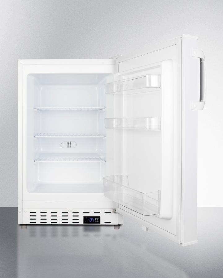 Summit Appliance offers a quality selection of MOMCUBE(R) all-freezers designed for reliable long-term storage of breast milk in residential settings, with advanced features for user convenience. The ALFZ36MC is a MOMCUBE(R) all-freezer with a flexible design that can be built-in under lower ADA compliant counters or used freestanding. Sized at 32" high and just under 20" wide, it's perfect for homes, offices, and other settings in need of extra storage space for nursing mothers. The user-reversible door is 3" thick for efficient insulation, with a handle included for added convenience. This unit comes with a right angle cord to allow for easier placement without added depth. A digital thermostat, located in the kickplate, makes for easy temperature management with a readout in Fahrenheit or Celsius. Inside, the ALFZ36MC features an all-white interior for easy cleaning and viewing of contents. Static manual defrost operation provides efficient cooling inside the 2.68 cu.ft. interior. Three adjustable wire shelves afford optimal storage options for mothers storing ice packs, milk, or similar nursing-related items. Three removable door racks accommodate additional storage as needed. The user-set high and low temperature alarms provide added security should the temperature go beyond the setpoint, while the open door alarm sounds if the door is ajar over one minute for added peace-of-mind. These alarms can be disabled depending on your needs. With its convenient size and user-friendly features, the ALFZ36MC is the perfect solution for nursing mothers seeking dependable long-term breast milk storage in the home. For a locking version, see the ALFZ36LMCTBC.