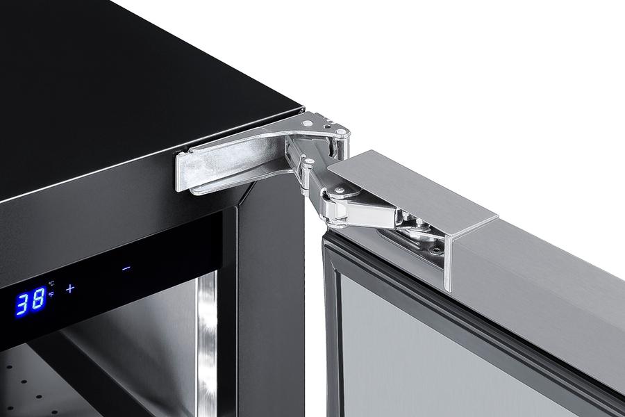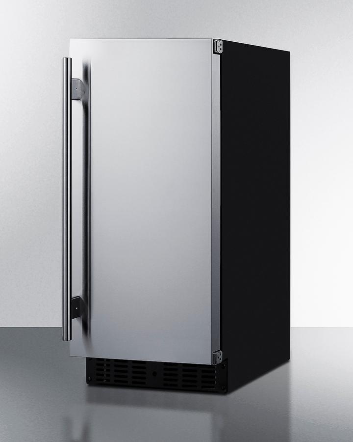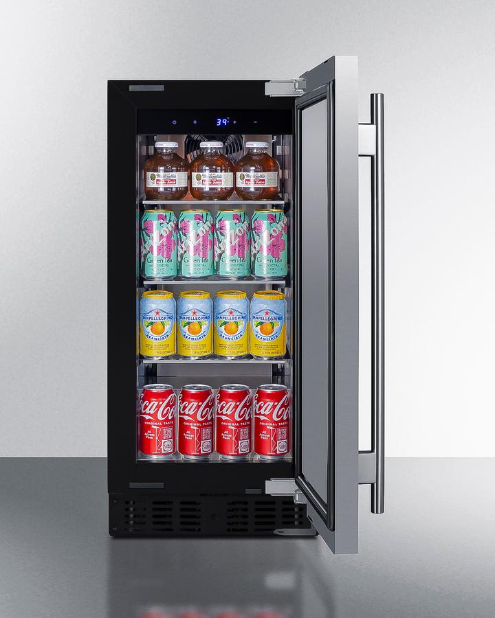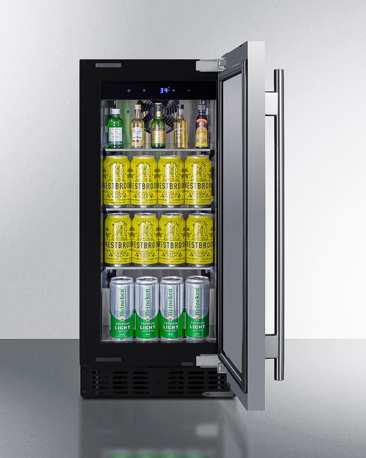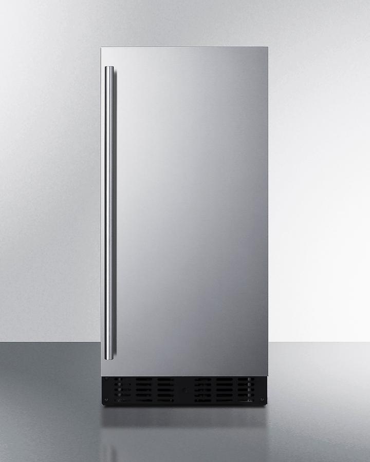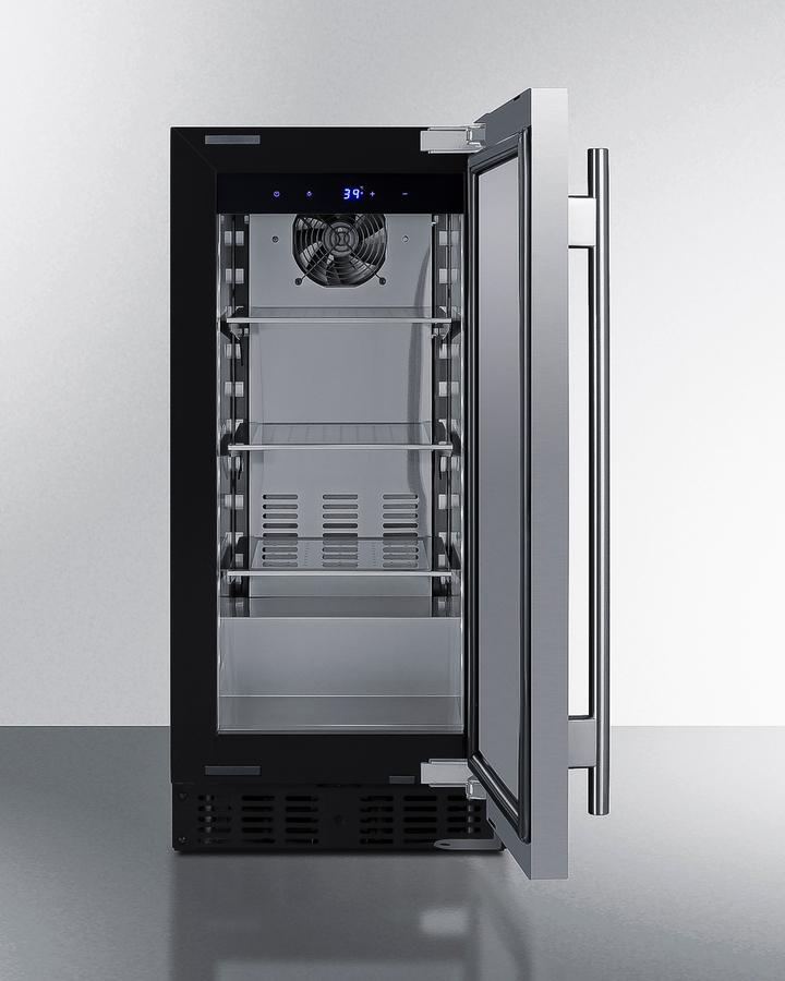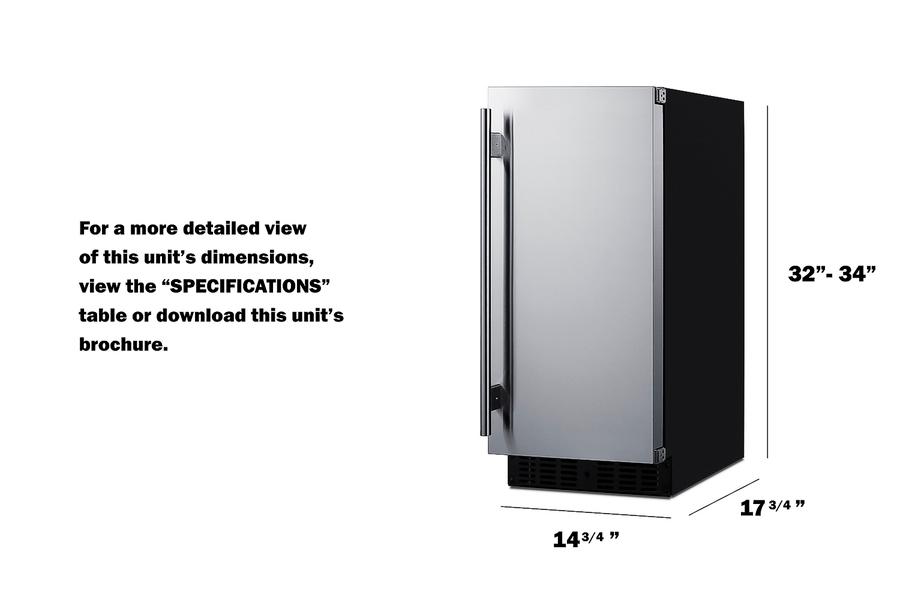 Summit's shallow depth series of built-in undercounter refrigeration brings full functionality to kitchen islands, wet bars, and other settings with space limitations. Model ASDS1523 is a 15" wide all-refrigerator sized under 18" deep. It comes in a 32" height to fit under lower ADA compliant counters, with adjustable legs and a sliding kickplate cover that also allows you to raise the overall height up to 34" to fit standard counter spaces. The front-breathing system allows built-in installation, while the fully finished black cabinet also allows freestanding use. This unit has a sealed rear and right angle cord for a better fit. The stainless steel wrapped door is user-reversible and includes a front lock and pro style handle. Inside, the ASDS1523 features stainless steel construction for improved durability and sanitation. Fan-forced cooling ensures even temperature distribution and fast temperature recovery. Recessed LED lighting offers an attractive yet efficient look. The digital thermostat makes it easy to manage the interior temperature. This unit includes cantilevered shelving system with glass shelves for flexible storage. Additional features include an open door alarm, high temperature alarm, and Sabbath mode setting that lets you disable some of the electrical elements during periods of observance. The ASDS1523 refrigerator is ETL-S listed to NSF-7 commercial standards but can also be used in the home. With its deluxe style, user-friendly features, and uniquely shallow depth, this unit offers premium value for a variety of settings. Additional 18" deep choices are available in 15", 19", and 24" widths, including outdoor refrigerators, refrigerator drawers, wine cellars, and more.