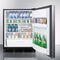 Accucold by Summit Appliance offers a wide range of all-refrigerators for general purpose storage. The commercially listed FF6BI7ADA Series features 24" wide all-refrigerators designed for built-in undercounter use in ADA compliant settings. The FF6BKBI7IFADA is a 32" high all-refrigerator with a full 5.5 cu.ft. capacity inside a slim 24" footprint. The front-breathing design allows built-in use under counters, while the fully finished cabinet also lets this unit be used freestanding. This model has a black cabinet. The factory reversible door features an integrated stainless steel door frame designed to accept full overlay panels for a custom look (panel size: 23 5/16" W x 28 1/4" H). Users provide their own handle. Inside, the FF6BKBI7IFADA utilizes low maintenance automatic defrost operation. Our unique "hidden" evaporator is set behind the rear wall to create a seamless, easy-to-clean interior. Adjustable glass shelves allow users to reconfigure the interior for optimum storage. Additional features include automatic interior lighting, door storage, and a crisper drawer. This unit includes an adjustable dial thermostat. The FF6BKBI7IFADA is ETL-S listed to NSF-7 standards for use in commercial establishments. For more finish options, browse the entire FF6BI7ADA Series. NOTE: This unit is designed for general purpose or commercial applications and does not meet DOE energy standards for residential use.