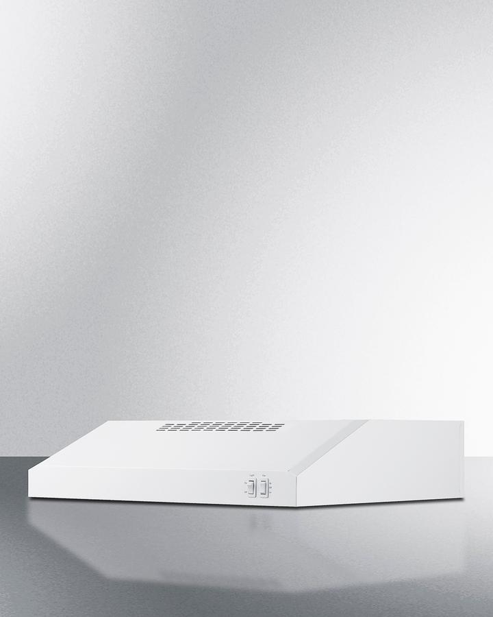Made in North America, Summit's HC series under cabinet convertible range hoods offer versatile ventilation solutions for every kitchen space. Model HC24WW is a 24" wide range hood ideal for apartments and other smaller kitchens. It comes in a clean white finish constructed from 21 gauge galvanized steel for a clean look and durable design. The powerful 2-speed fan is easily managed by a rocker switch with a high and low setting. This unit can operate at 270 CFM for thorough ventilation. Airflow is directed upwards at a slight angle, ensuring smoke and odors won't blow towards the home chef. This hood ships for ductless/recirculating ventilation (where no exhaust connection to the outside is available) but is convertible for horizontal or vertical ducted ventilation (3 1/4" x 10" rectangular ducting or 7" round, transition required). We include a combination aluminum mesh/charcoal filter to absorb grease, smoke, and odors. This unit accepts a standard light bulb (not included). Both the filter and lens cover snap in place, with no tools required to change out as needed. Note: this hood does not include a power cord and is designed to be hard-wired by a licensed professional. In addition to this range hood, Summit manufactures this series in additional colors, as well as shell hoods, wall-mounted European hoods, and island hoods in a range of styles. Browse the full Summit product line to explore your options.