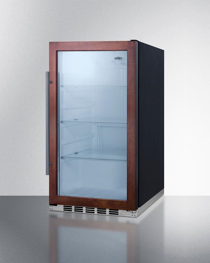 Summit's line of built-in undercounter outdoor appliances includes slim-fitting display beverage centers designed for optimum storage and product presentation. The SPR489OSPNR features a versatile design that meets NSF-7 and UL-471 commercial standards, but is also approved for residential use. Sized with a slim 19 inch width and 17 3/4 inch shallow depth, it features a jet black cabinet with a sealed back for safe installation in the outdoors. The height can be adjusted between 33 7/8 and 34 1/2 inches to best suit your space. The double pane tempered glass door includes a panel-ready trim that lets you create a custom look to match or complement other cabinetry (panel dimensions: 18 3/4 inch W x 31 9/16 inch H at a minimum of 3/4 inches thick). Customers supply their own handle to best match their setting. The space-saving right angle plug and integrated hinge offer added space savings, while the stainless steel kickplate completes the look. Inside, the SPR489OSPNR utilizes an internal fan to ensure the interior is evenly cooled from top to bottom. An automatic defrost system allows for minimal user maintenance, while the white interior and LED lighting allows full visibility of stored items. Three adjustable glass shelves with six positions provide optimal storage capacity inside the 3.1 cu. ft. interior. The dial thermostat, with seven temperature settings, is located in the upper-right corner for easy temperature management. The SPR489OSPNR can be installed indoors or outdoors and is designed for built-in or freestanding use. Additional panel-ready choices are available in 15 inch, 18 inch, and 24 inch wide fits. Browse our full selection to find the perfect fit.