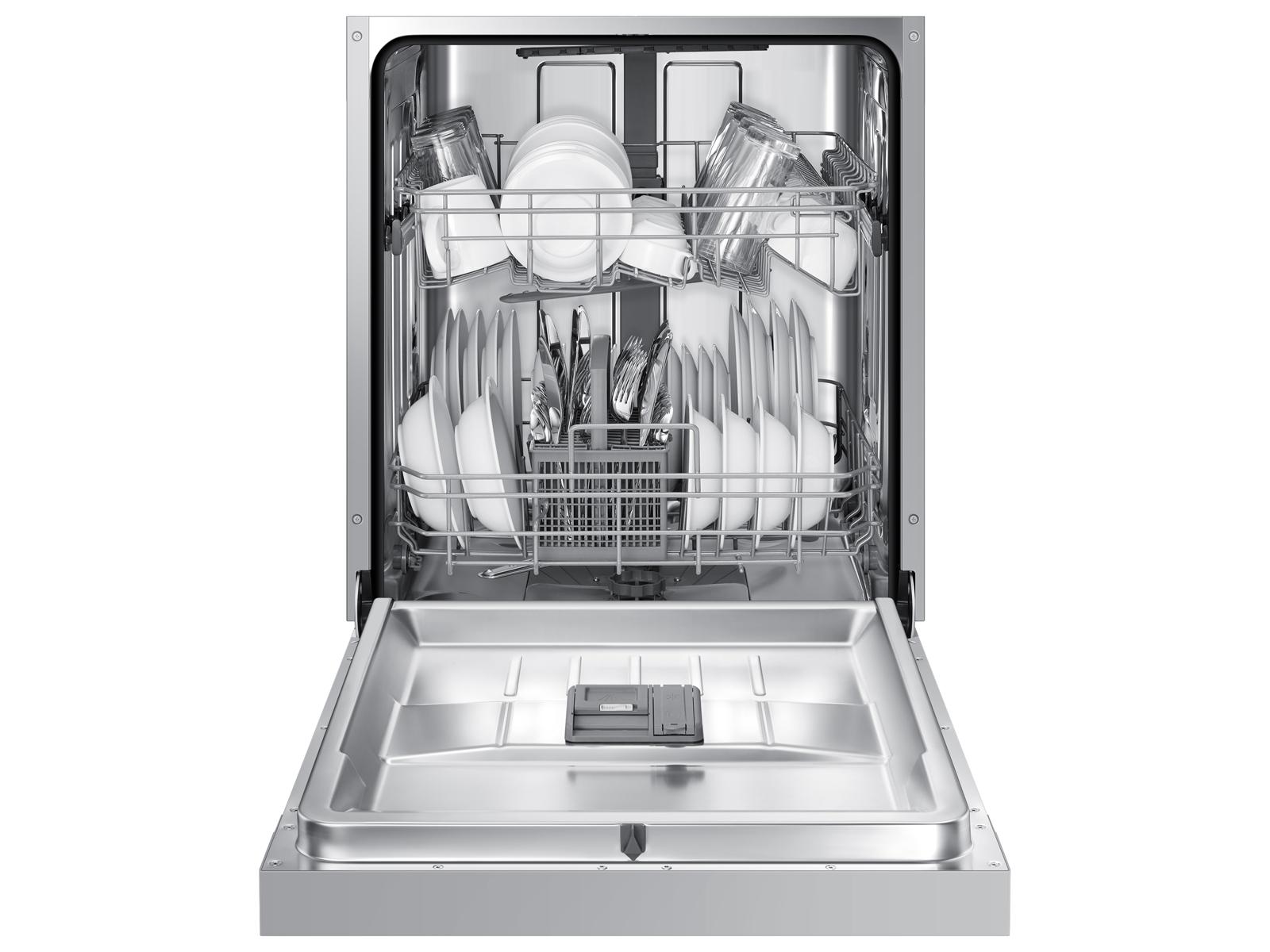The Samsung DW60R2014US is a 24‑inch built‑in dishwasher designed for thorough, convenient cleaning. Equipped with a multi-stage 4‑level filtration system, it captures food particles for sparkling results. The dedicated Sanitize cycle eliminates 99.999% of bacteria, making it ideal for baby bottles or utensils. Featuring Zone Booster technology, you can direct high-pressure water to tackle stubborn messes, while a versatile adjustable upper rack accommodates large pots, pans, and delicate stemware. Finished in durable stainless steel, it complements any modern kitchen. Additional highlights include Quiet Clean Operation for quiet washes, Energy Star® certification, and a handy child lock option for peace of mind in family homes.