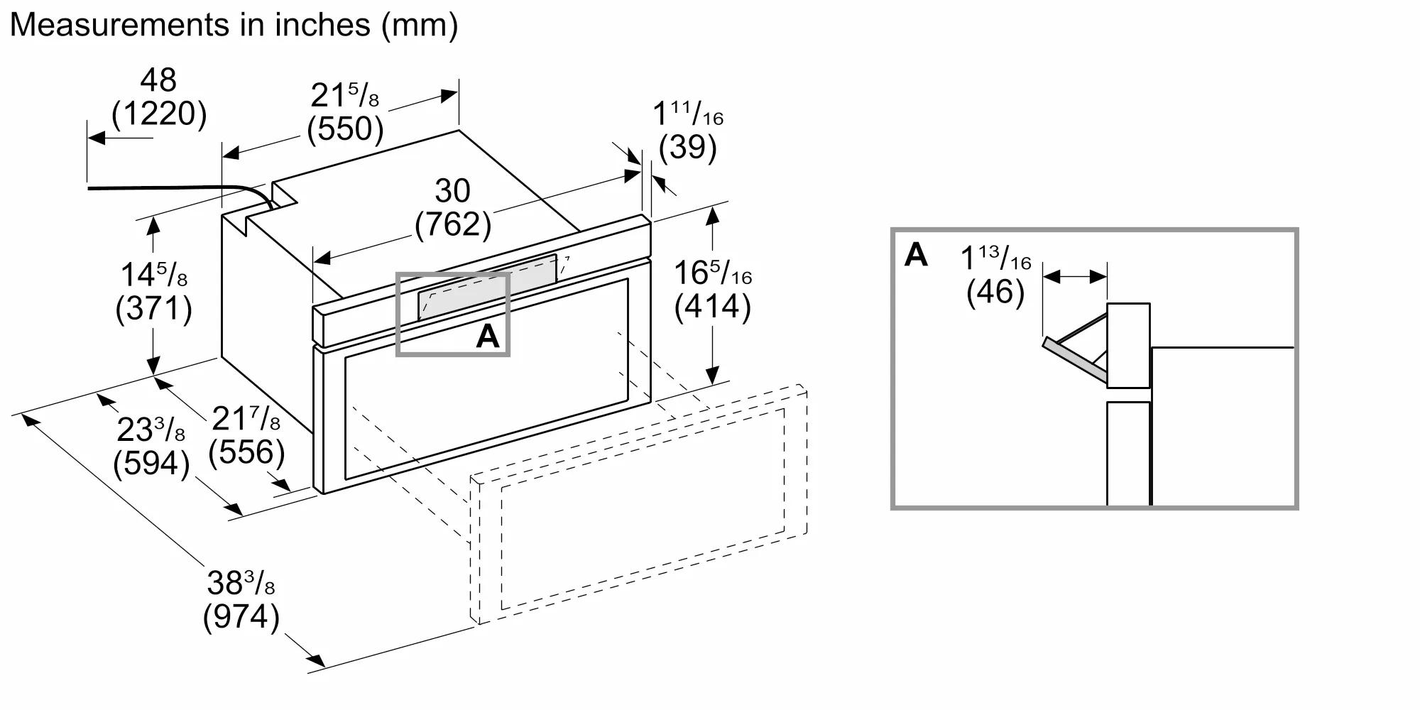 | Required Cutout Size (HxWxD) (in) | 15 9/16 x 28 1/4 x 23 1/2'' |