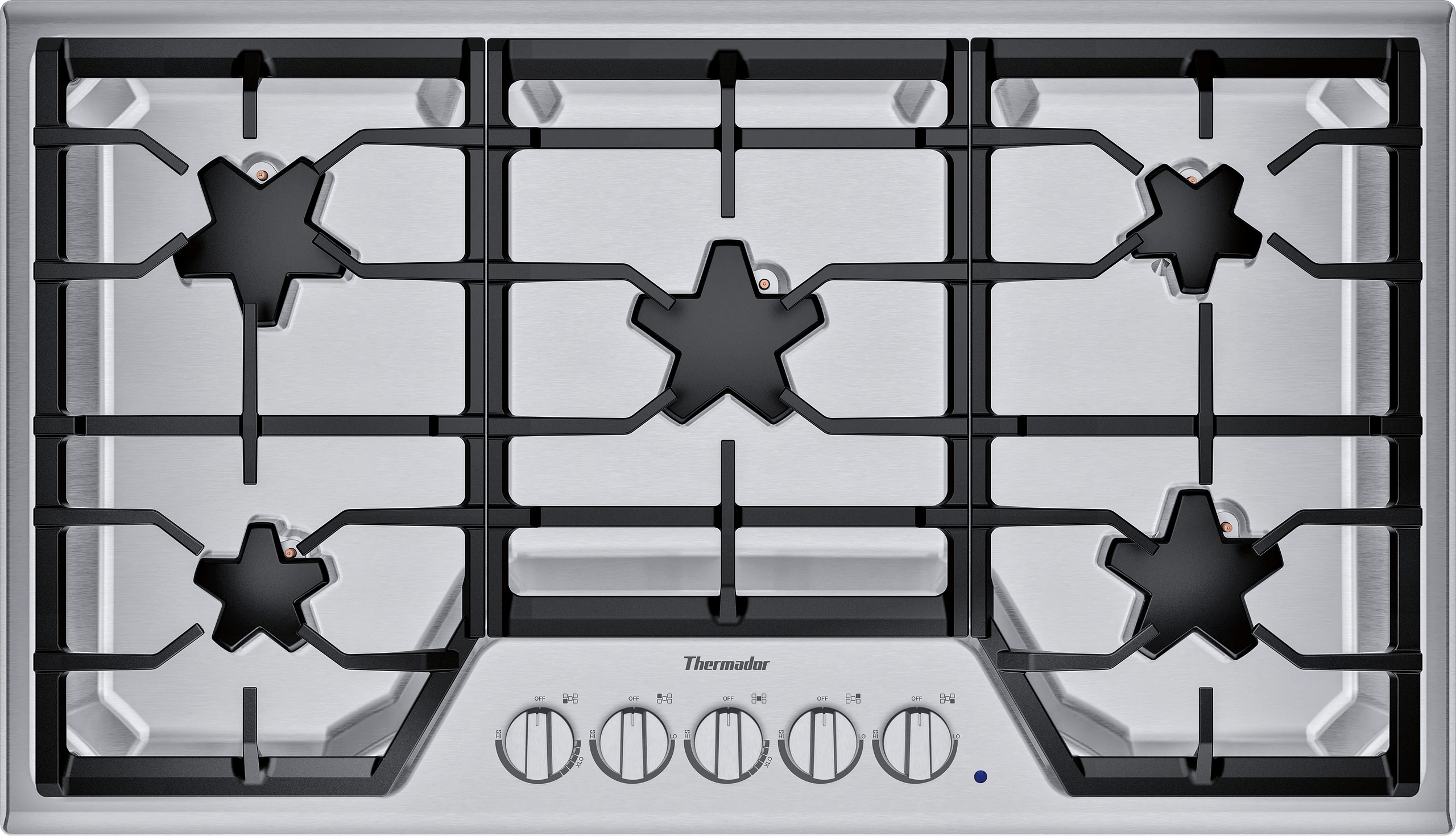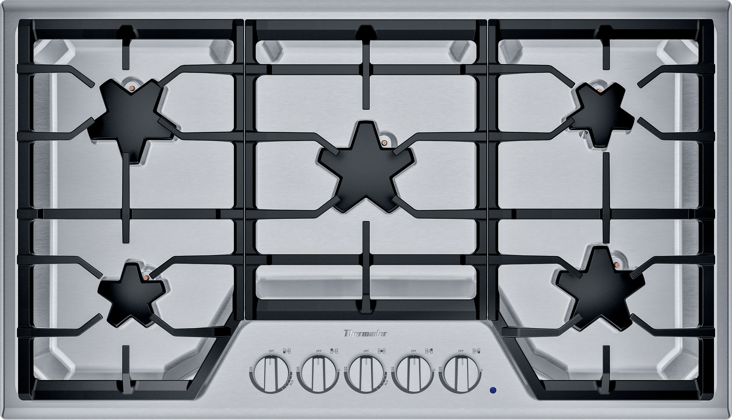 The connected gridwork allows for moving pots and pans effortlessly across the cooktop.