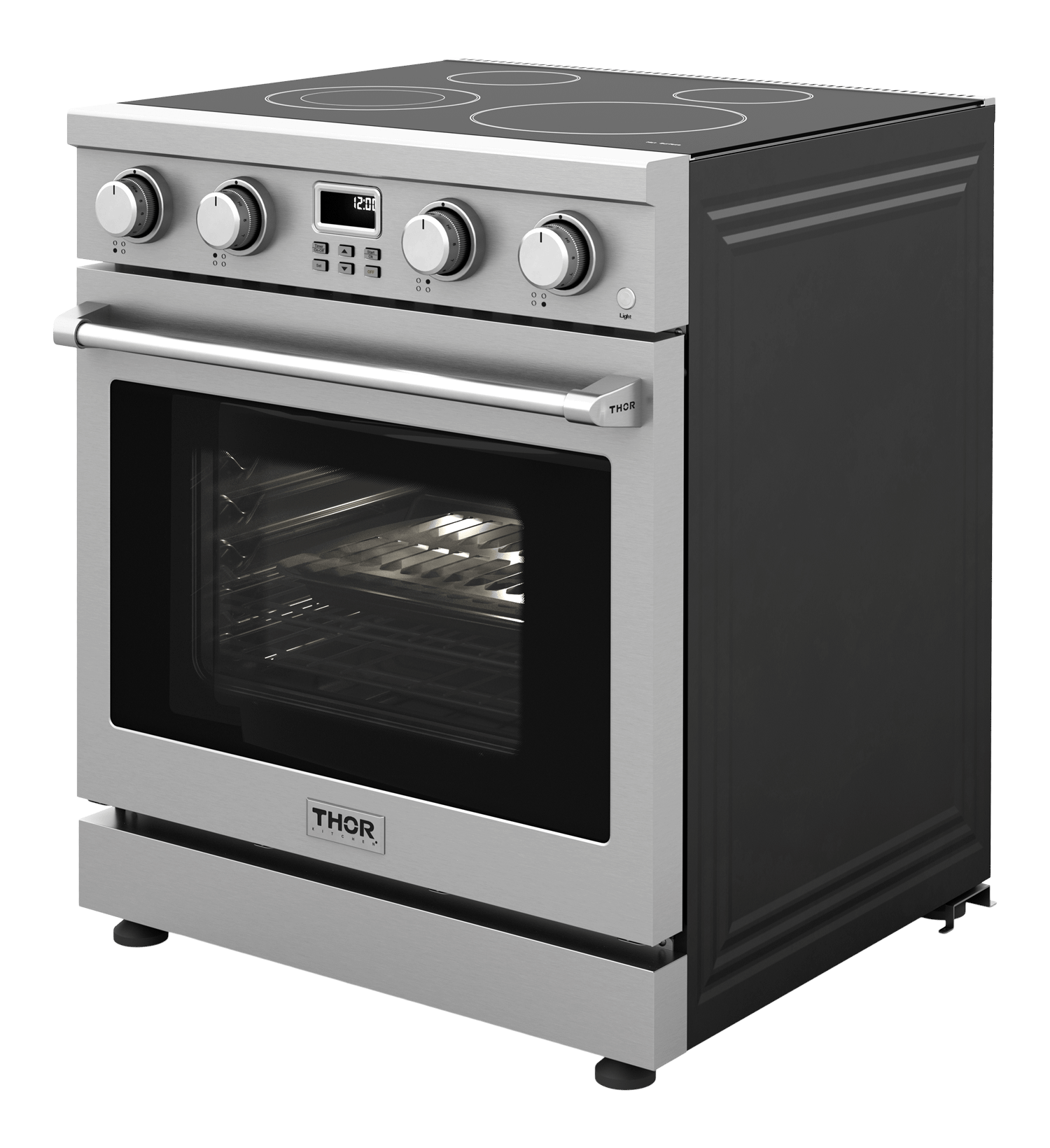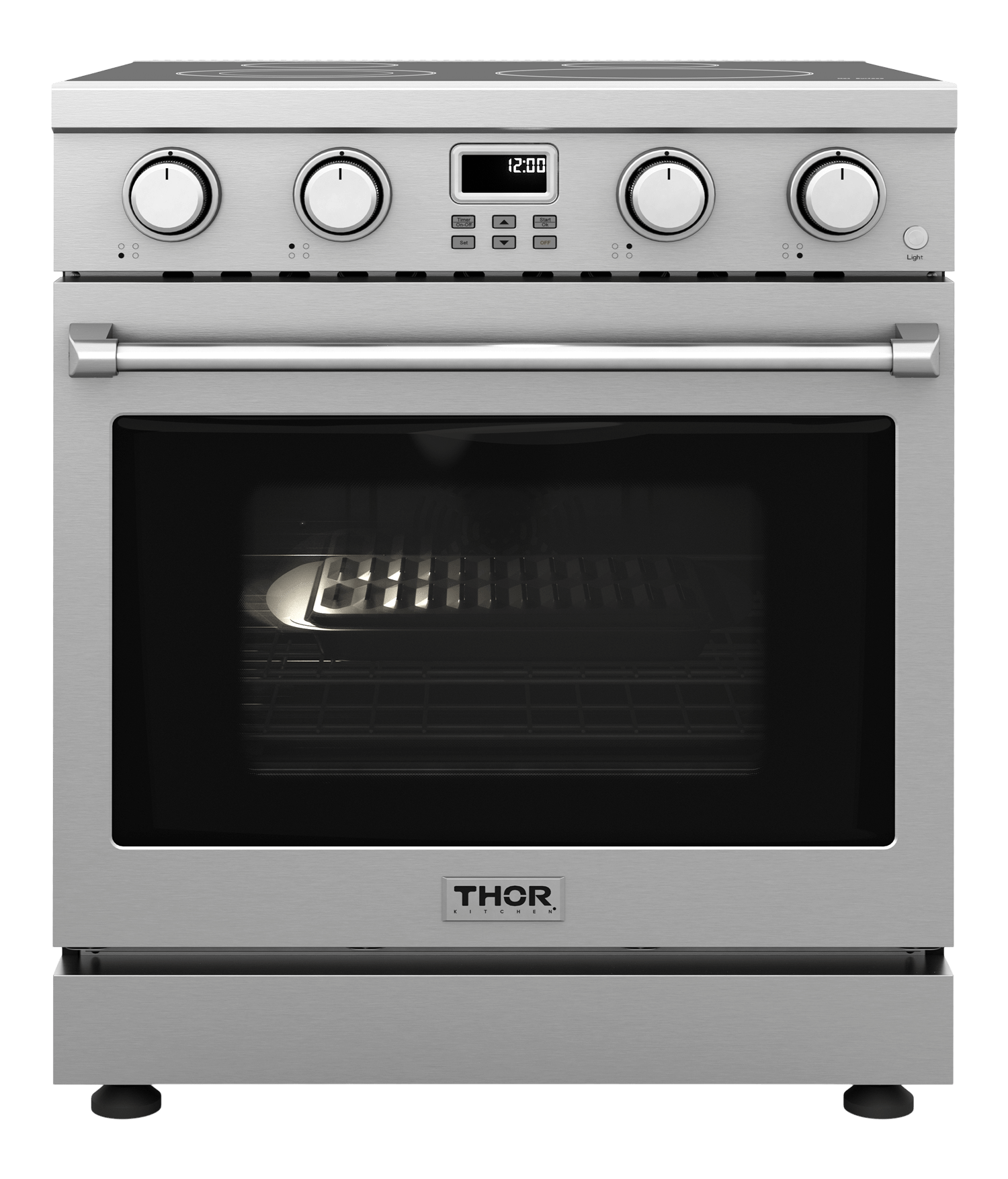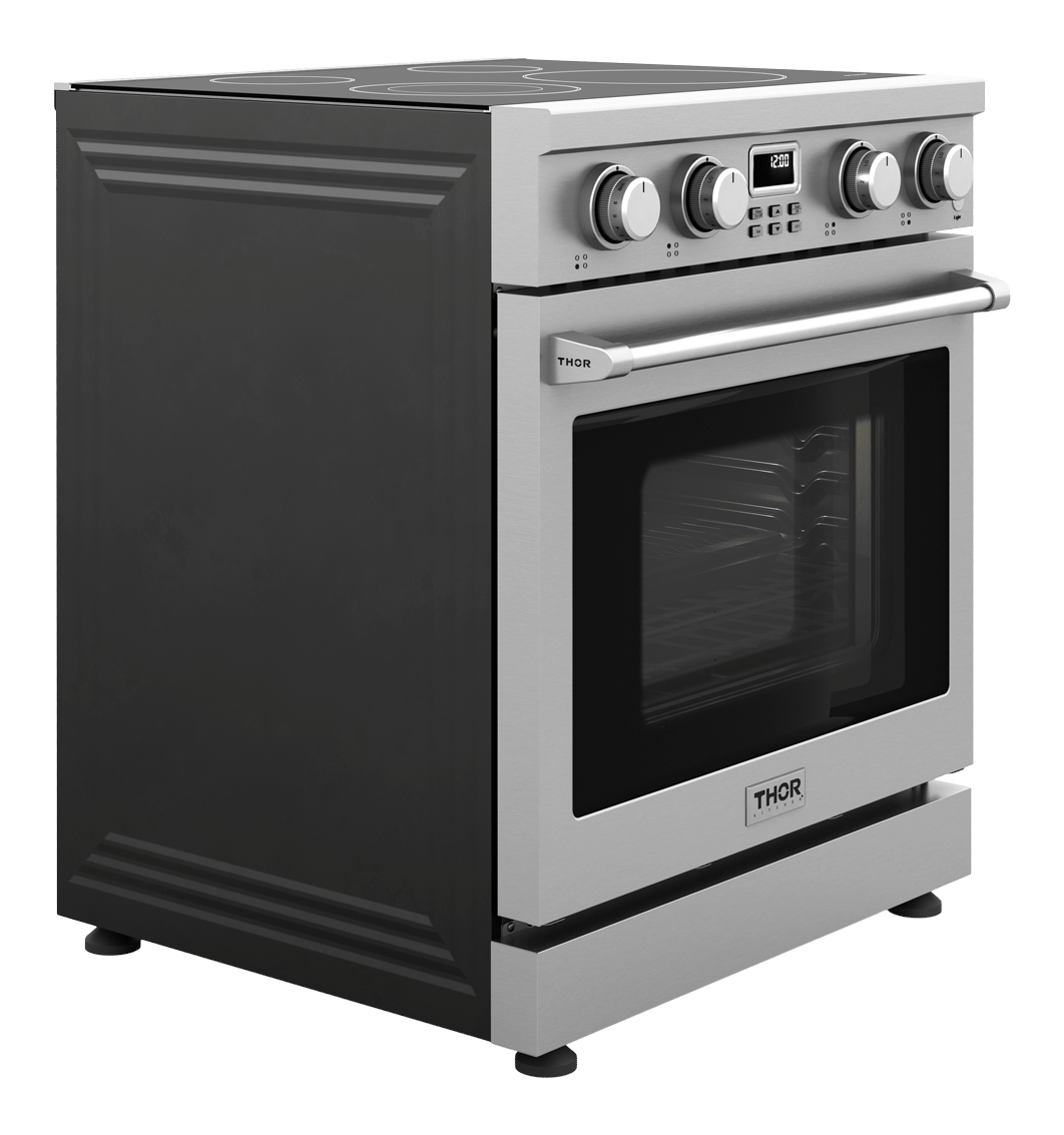 The THOR Kitchen 30 Inch A-Series Electric Range is a stainless-steel machine that is designed with powerful features and functionality. This range features a smooth glass top that is easy to clean and four radiant heating element zones that give you the ultimate cooking flexibility with a power radiant cooktop. From a 1,200W single burner to a high-powered 3,000W dual heating element, this 30-inch electric range gives you the power to master any meal. #cooklikeagod