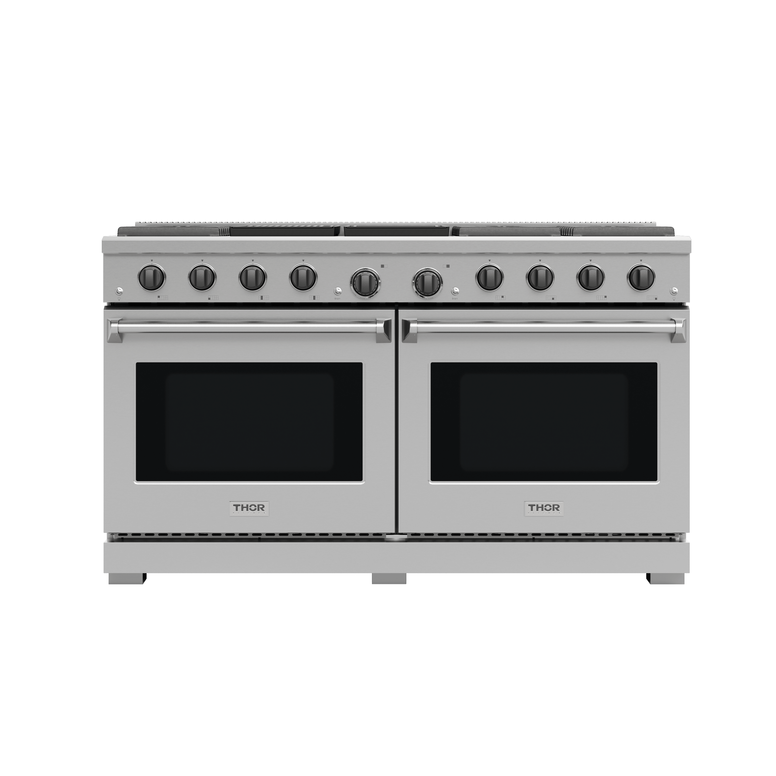 THOR Kitchen offers the power and performance of a premium professional appliance at a practical price. The two 4.8 cu. ft. ovens allow you to prepare multiple dishes simultaneously, perfect for hosting dinner parties or cooking large family meals. Effortlessly maintain a spotless kitchen with the black porcelain spill tray, which catches any messes and simplifies cleanup. The versatile 8-burner cooktop, ranging from a 3500 BTU burner to a powerful 18,000 BTU burner, gives you the flexibility to master any culinary challenge. Heavy-duty continuous cast-iron cooking grates provide stability for any size cookware, ensuring durability and reliability. The convection fan ensures fast and even cooking, while the large oven windows and bright halogen lights let you easily monitor your food without opening the door. With dual-function oven controls and high-temperature frying capabilities, this range is designed to bring out the professional chef in every home cook.