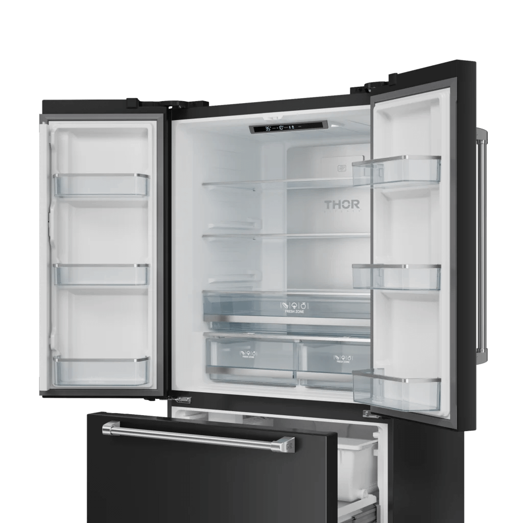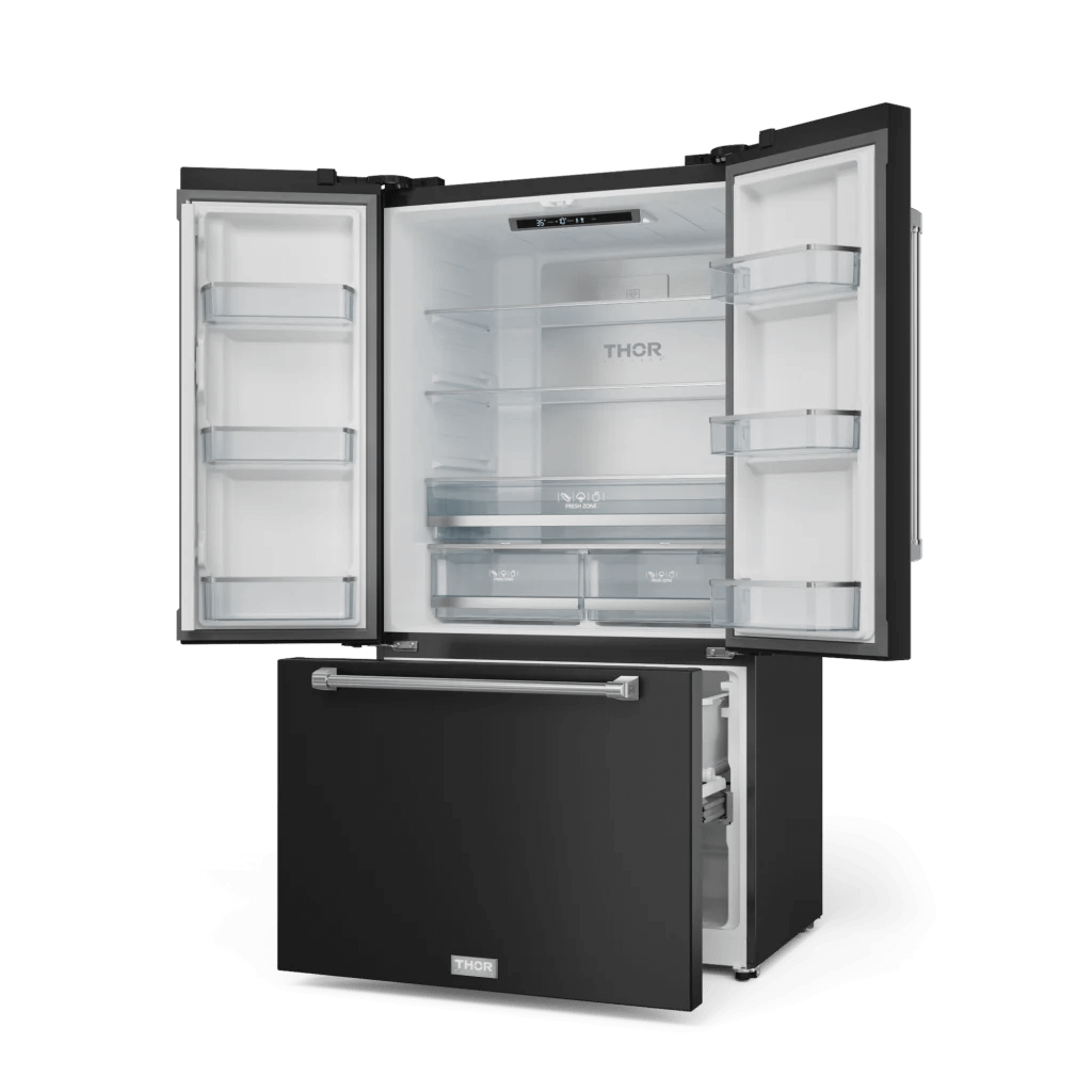 Experience superior freshness with the 36 Inch 20.3 cu ft French Door Counter Depth Refrigerator in Black/Stainless Steel. With advanced cooling technology, spacious interiors, and customizable features, this refrigerator ensures your ingredients stay at peak freshness. Designed for durability and efficiency, it brings top-tier performance and style to your kitchen.