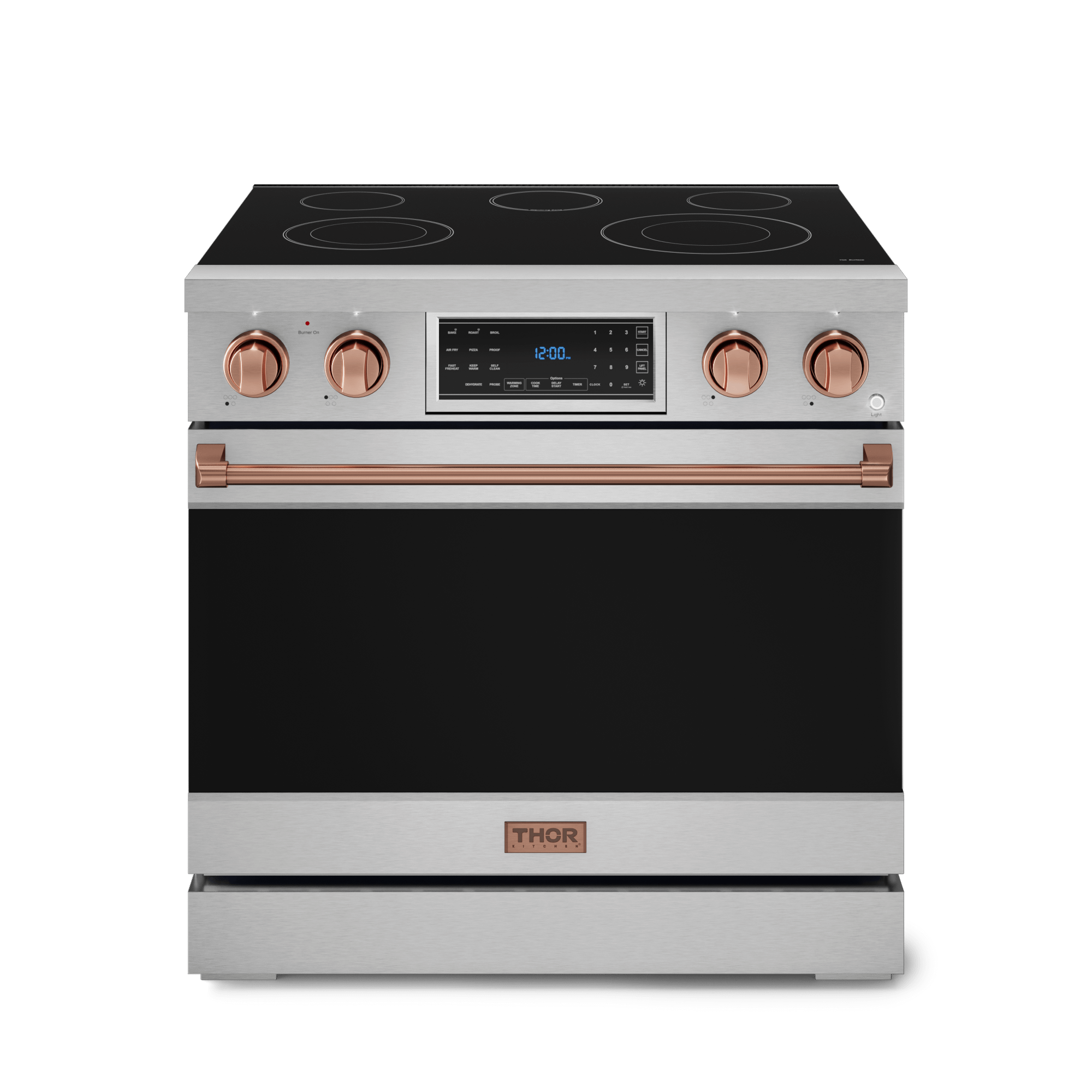 Designed for chefs who demand precision and power. With high-output burners, even heat distribution, and intuitive controls, this 36 Inch Professional Electric Range in Stainless Steel/Rose Gold elevates your cooking experience. Built for durability and performance, it brings restaurant-grade quality to your home kitchen, making every meal exceptional.