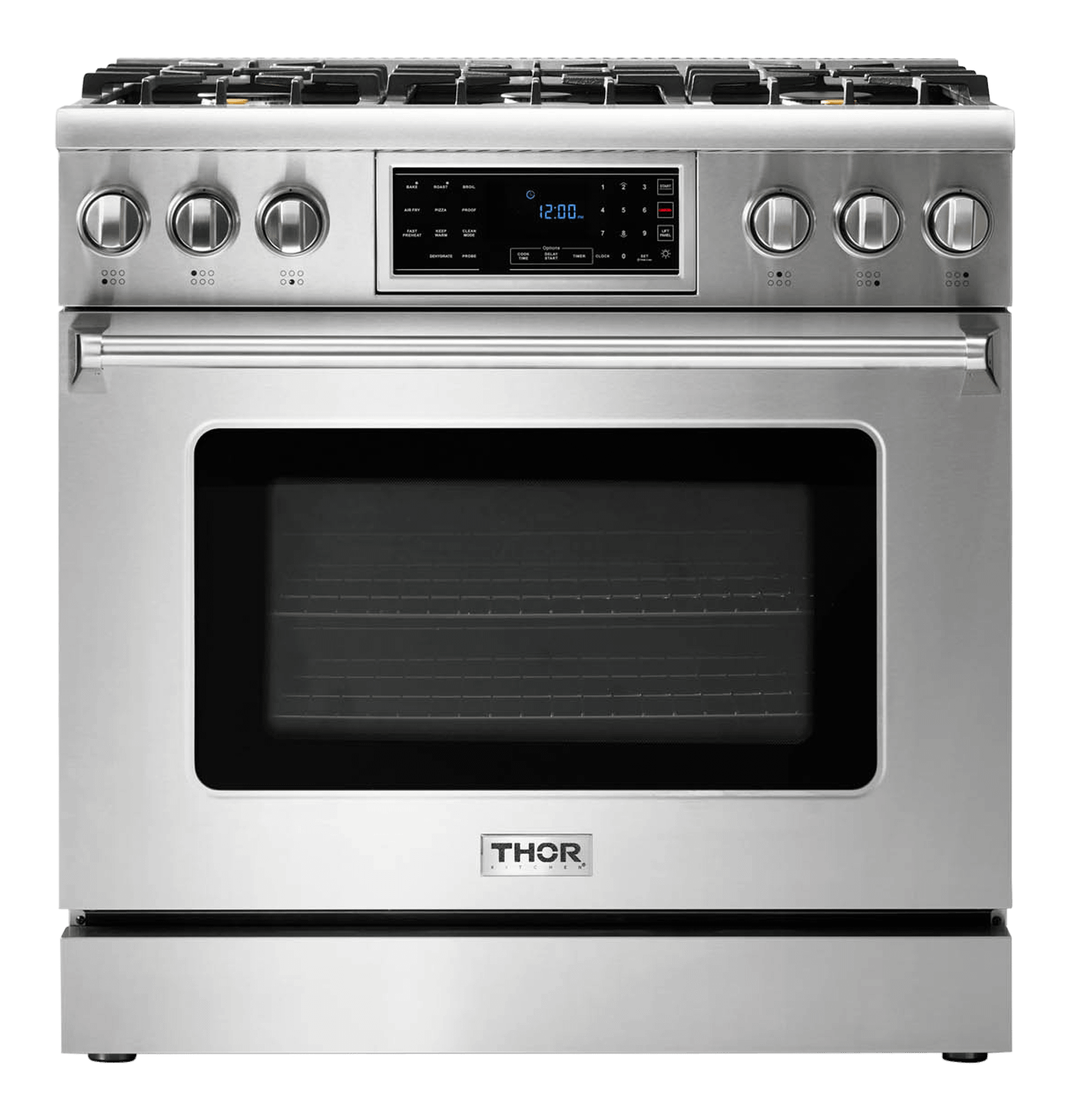 THOR Kitchen offers the power and performance of a premium professional appliance at a practical price. The THOR Kitchen 36 Inch Tilt Panel Professional Gas Range is a stainless-steel machine designed with professional features and functionality. With easily accessible tilt panel touch controls, high-powered burners, continuous grates and a commercial convection fan, this range takes everything from prime rib to snickerdoodles to the next level. #cooklikeagod
