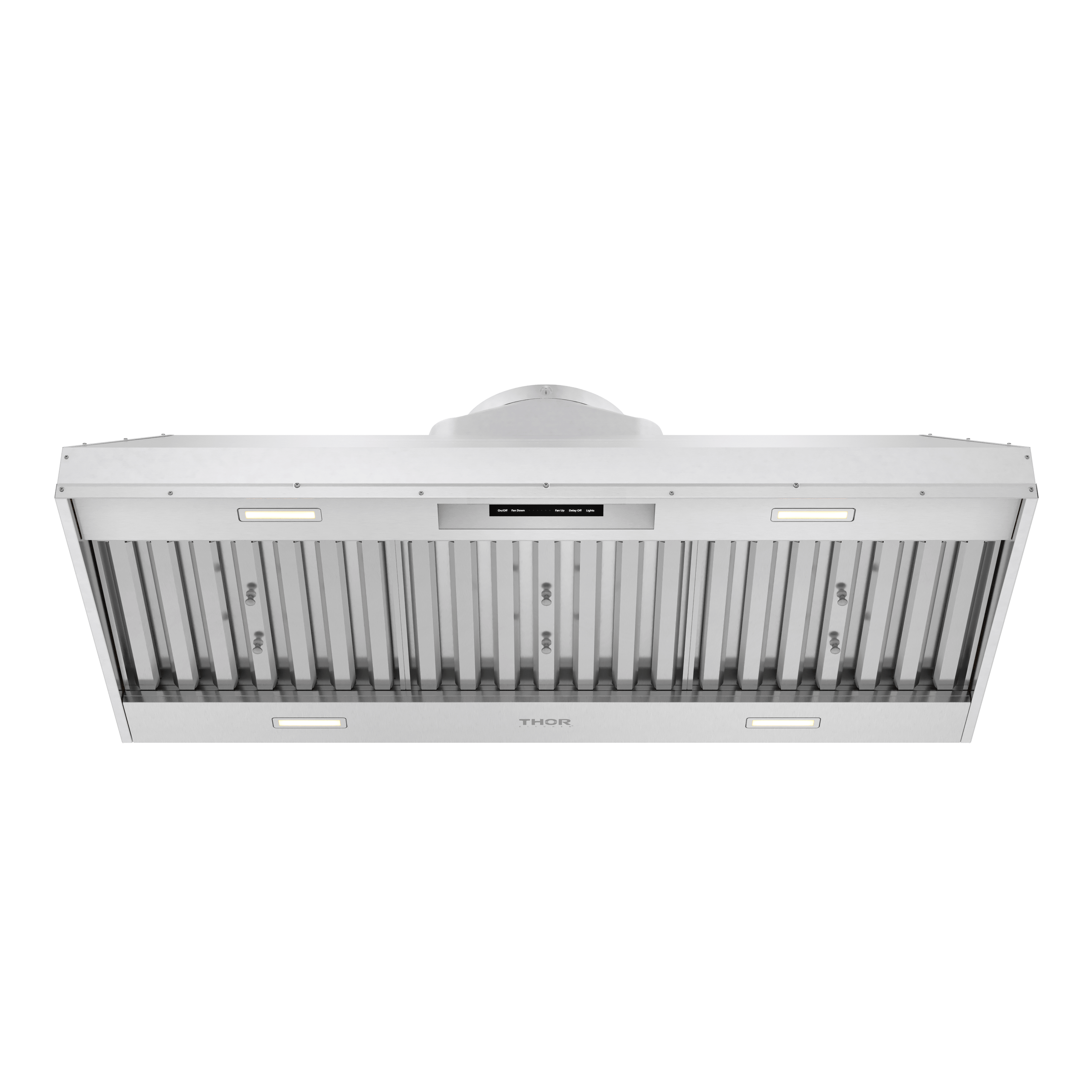 THOR Kitchen offers the power and performance of a premium professional appliance at a practical price. Introducing the 48" Liner Hood, designed to effortlessly handle all your kitchen ventilation needs with its powerful 1200 CFM motor. Perfectly customizable to meet any custom cabinet design, this liner hood integrates seamlessly into your kitchen decor. Wave goodbye to smoke, odors, and steam with intuitive Gesture Controls that let you adjust the speed with just a wave of your hand. The intelligent Heat Sensor activates the hood at 131(degree)F and shuts it off at 104(degree)F, while the Delay-Off feature lets you set a power-off delay for up to 12 minutes. Keep your kitchen grease-free with deep-groove Baffle Filters, which are also dishwasher-safe for easy cleaning. Bright LED Lights illuminate your cooking space, and the Clean Filter Reminder ensures your filters are always maintained. With 6 adjustable fan speeds and a responsive Touch Control panel, you have complete control over your kitchen environment.