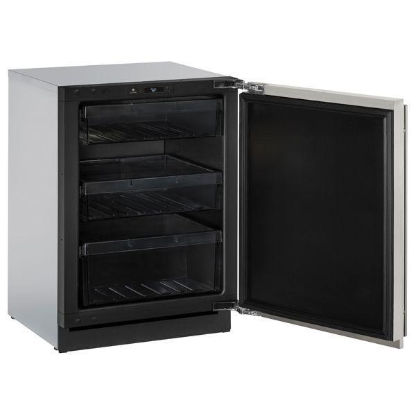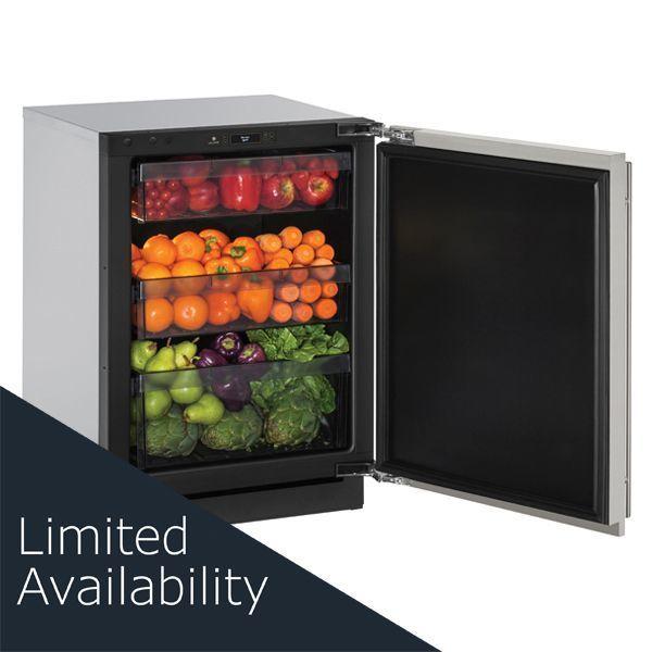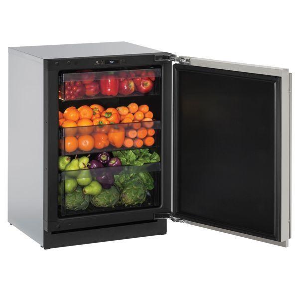 Store fresh produce, deli foods, pantry items, beverages, and more in our 24" 3000 Series Refrigerator. This product features convection cooling for quick and consistent temperatures. Sleek and sophisticated, U-Line's 3000 Series features black interiors with bright white LED theater lighting, full-text read out U-Select(R) Controls, and limitless integration capabilities with an articulating door hinge, door finishes in stainless steel or integrated panel-ready, and fully adjustable toe-kicks that can accept a custom panel to match your surrounding cabinetry.