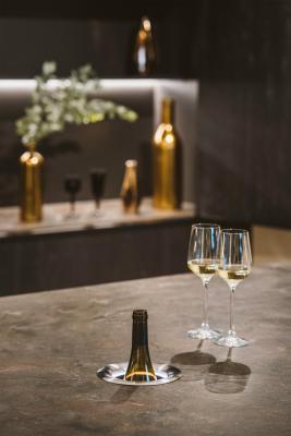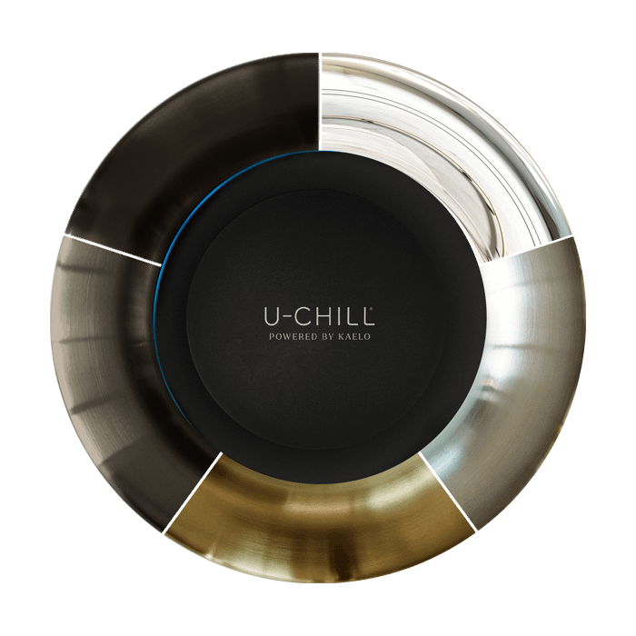 U-Chill (R) is designed to maintain the temperature of chilled wine, craft beer bomber bottles, carafes, and more. Simply touch to chill and control lighting options. All new brushed stainless steel crown included - with the option to customize with new accessory crowns that simply snap in place. Design your serving experience.