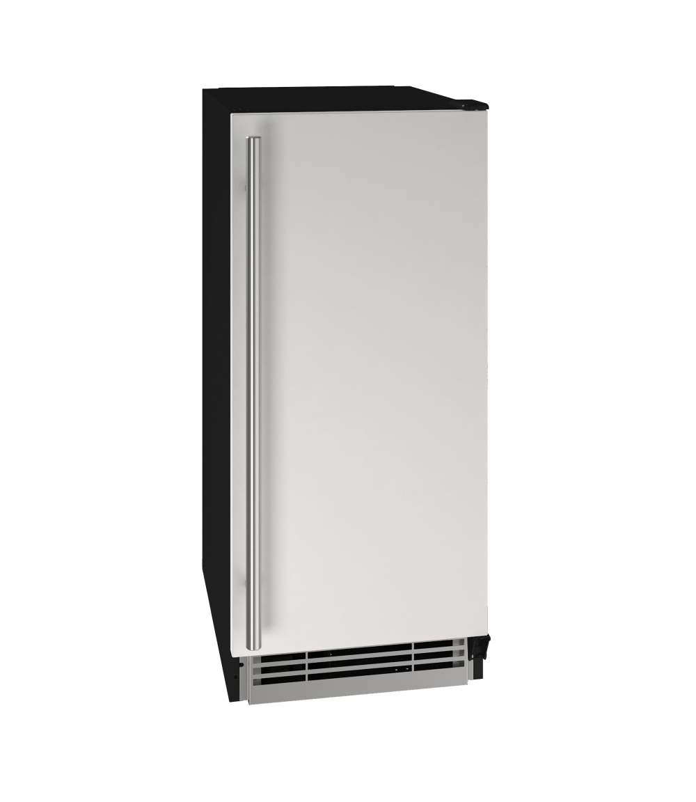 The U-Line UHCR115SS01B 15 Inch Crescent Ice Maker is ideal for compact spaces requiring reliable ice production. Capable of producing 38 lb of crescent ice per day, it stores 20 lb in the built-in bin. The stainless steel exterior resists corrosion and complements modern cabinetry, while the front-breathing ventilation system supports installation in tight undercounter or confined spaces without compromising performance. Features like a self-closing door, reversible hinge, and UL 1086 certification ensure convenience and safety. Designed for both marine and residential use, it quietly and efficiently delivers premium-quality ice with user-friendly controls.