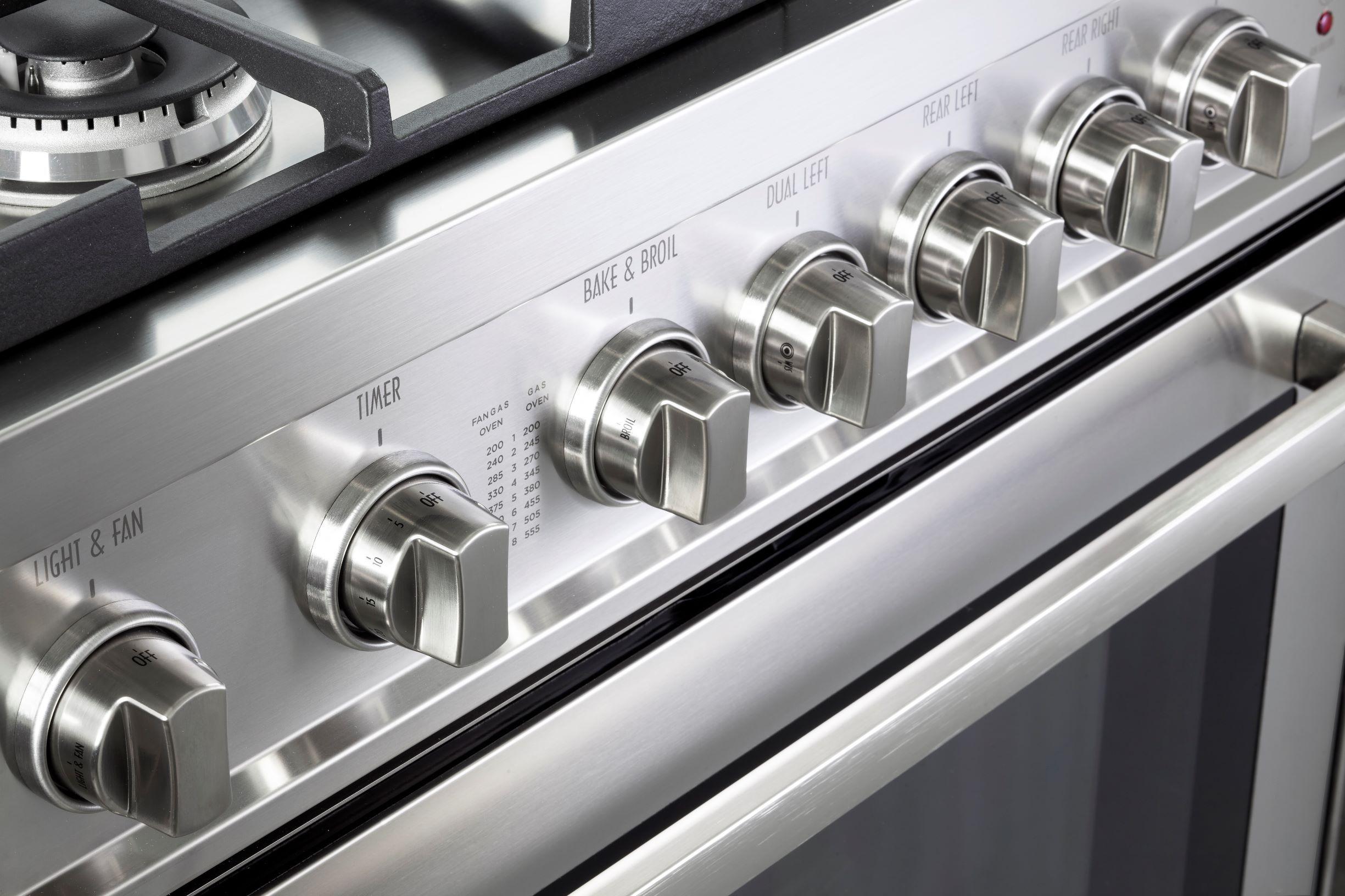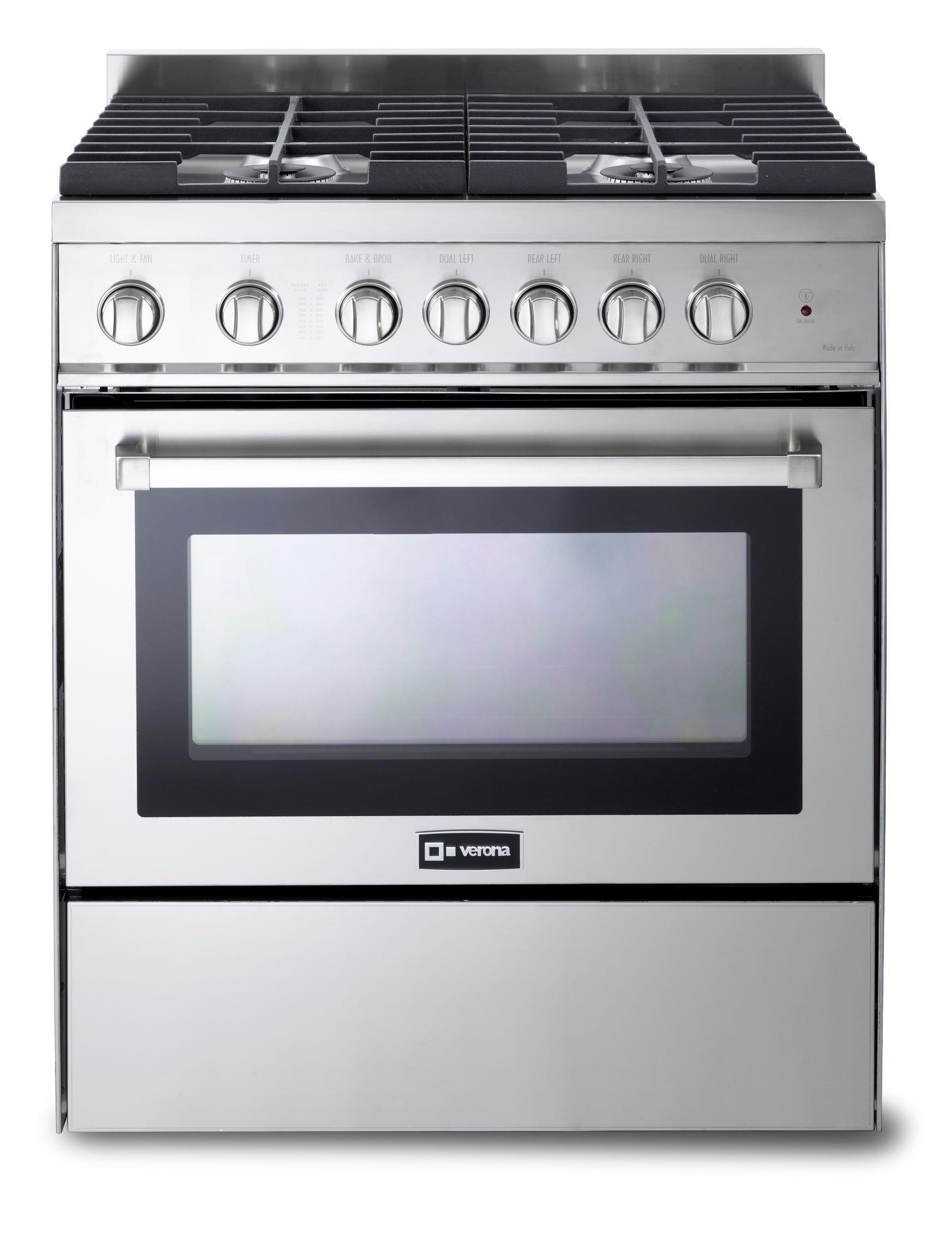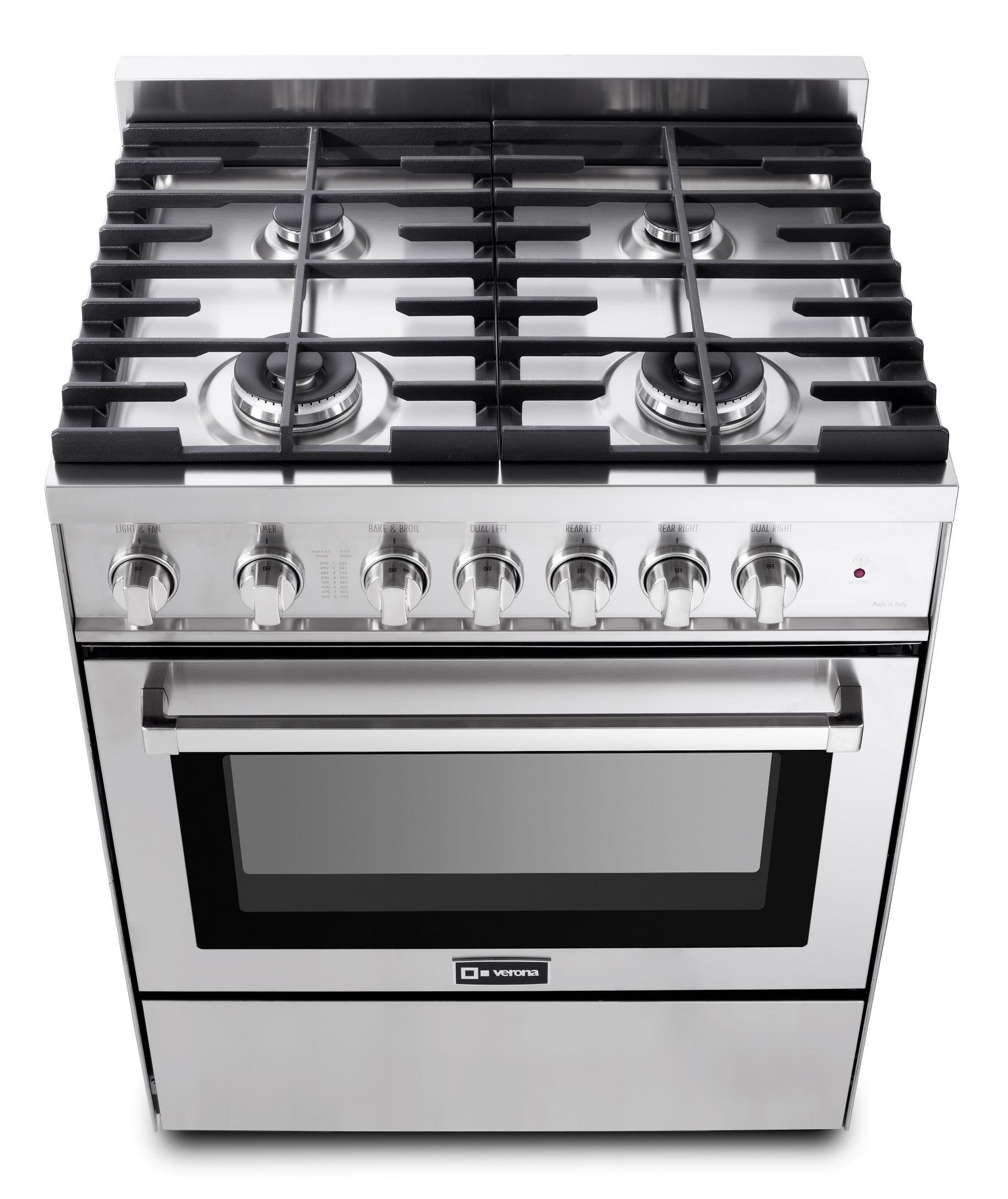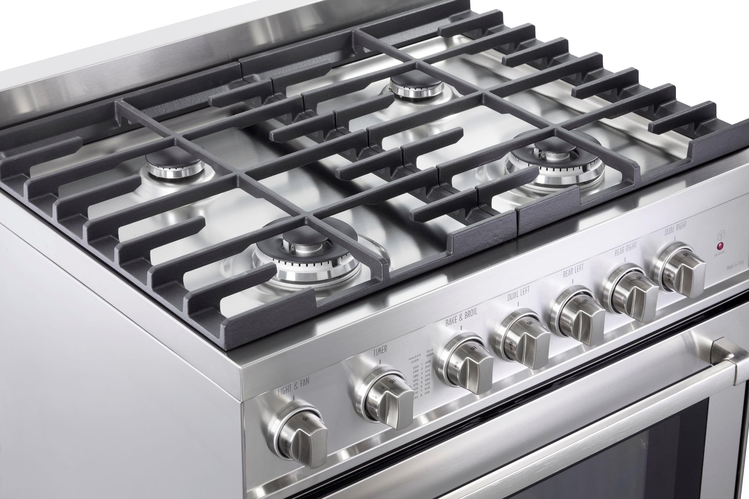 This Italian-made range comes equipped with four burners including two versatile power burners that provide up to 17,000 btus and can simmer down to 700 btus.