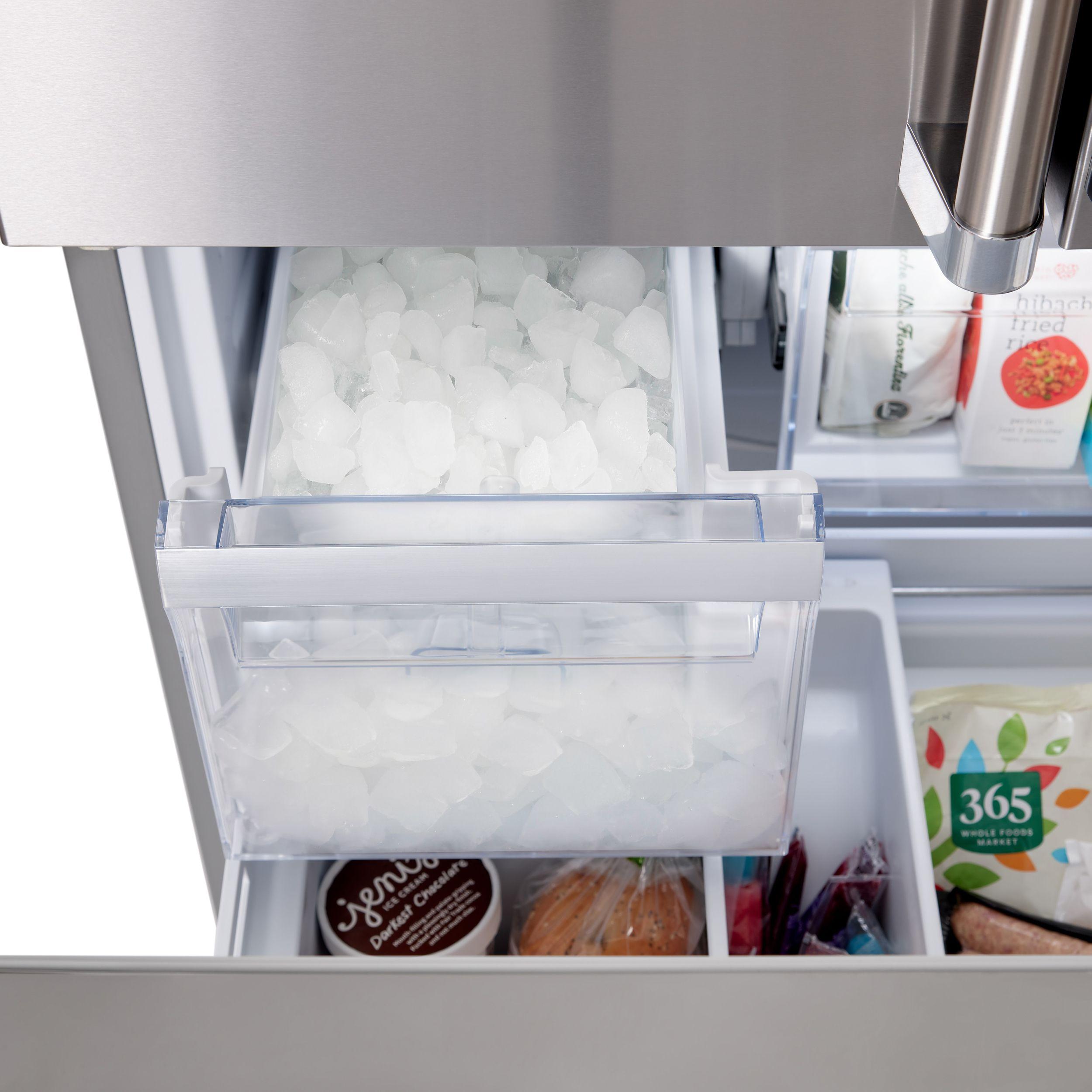 Full-extension ice bin produces up to an industry-leading 11 pounds per day and includes convenient ice scoop