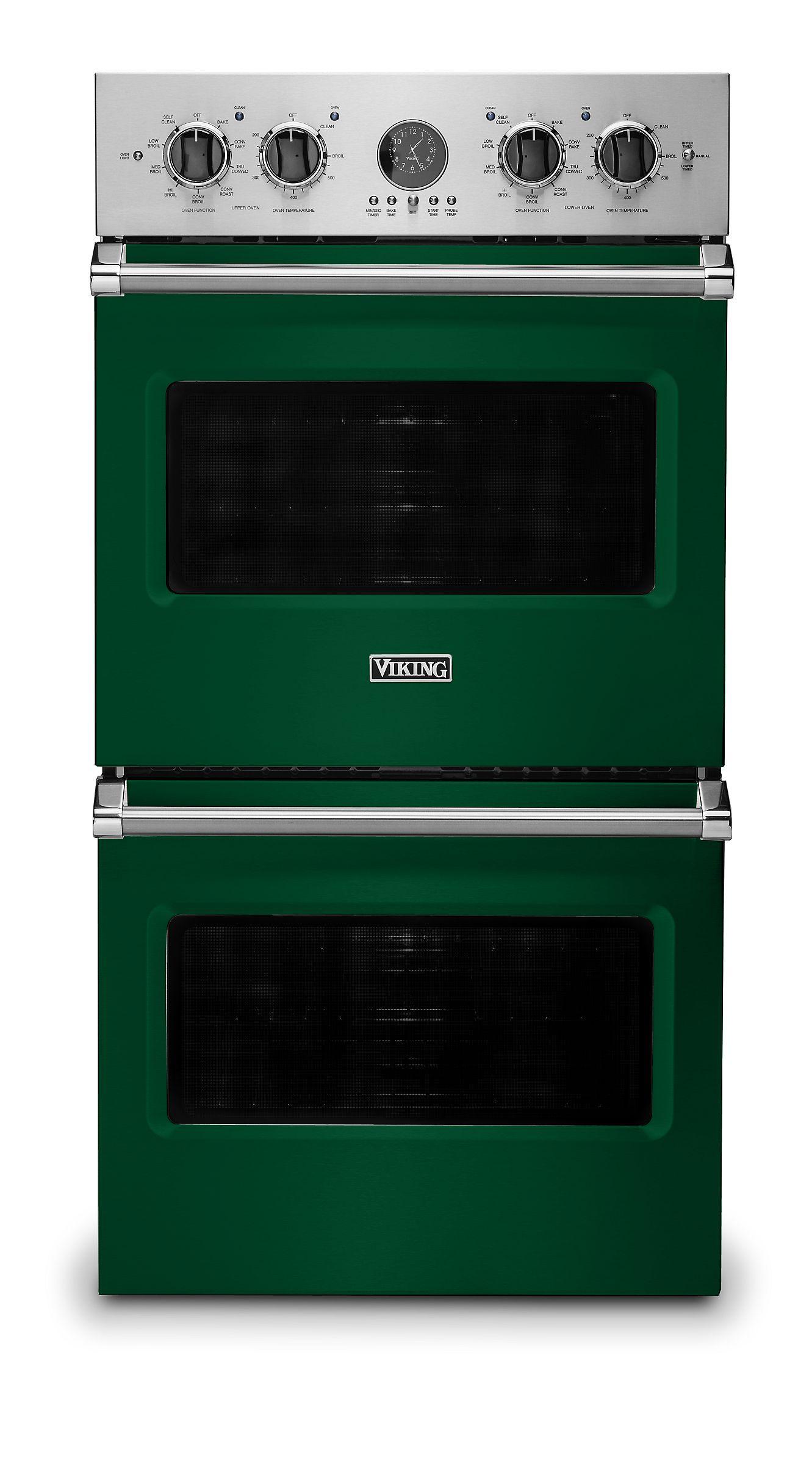 The brand Viking VDOE527IV is a high-performance double wall oven featuring dual True Convection™ systems for even baking across both cavities and a combined 10.7 cu ft capacity. It includes Rapid Preheat, self-clean cycles, halogen interior lighting, heavy-duty racks, and a sleek stainless steel finish with right-hinge configuration, all designed for professional-level kitchen performance in a compact form.