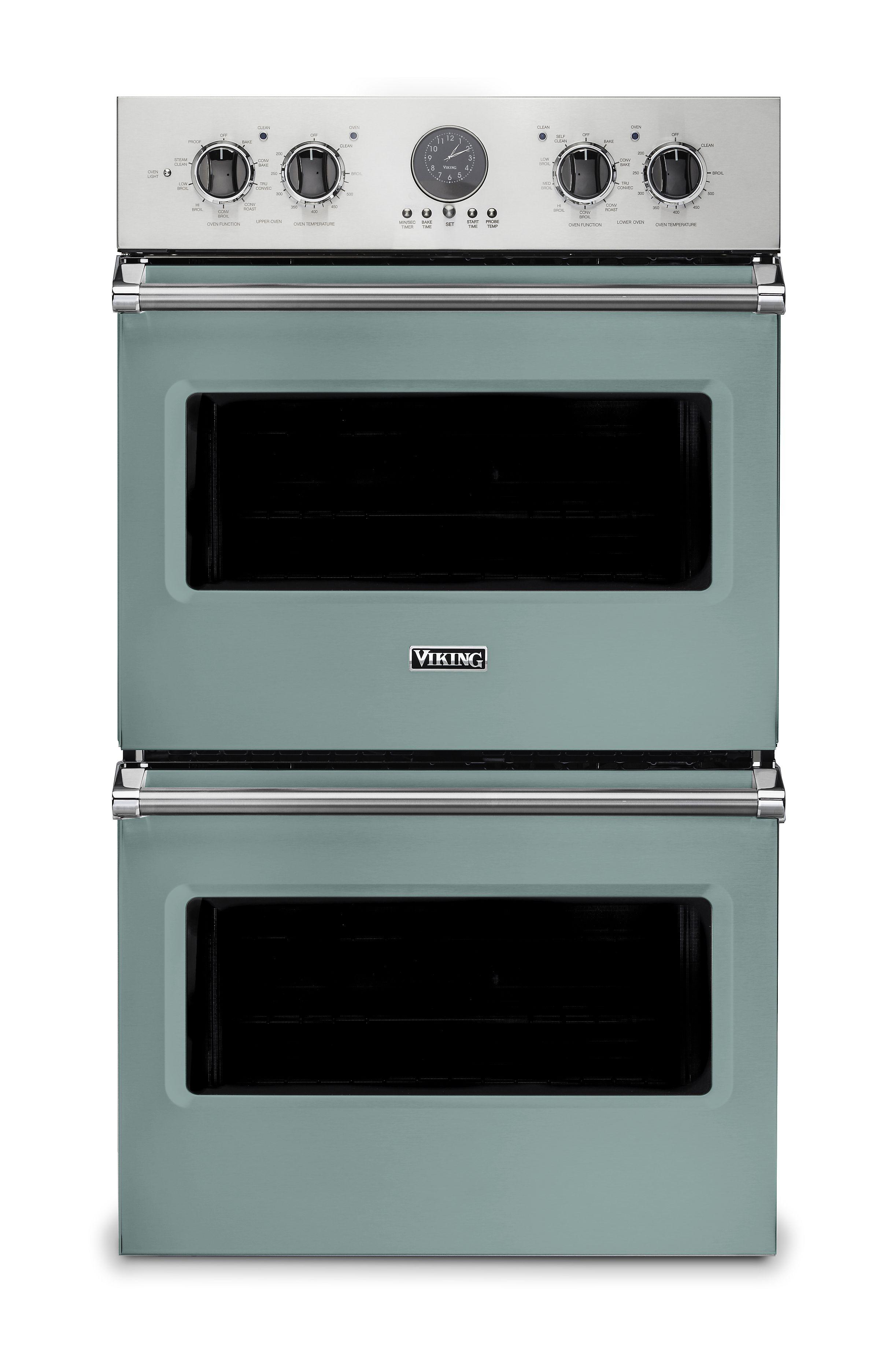 The brand Viking VDOE530SP brings a splash of color and commercial-level power with this 30-inch double electric wall oven in Pacific Blue. It offers true convection, touch-sensitive controls, and multi-mode cooking options. The heavy-duty racks, halogen lighting, and easy-to-clean surfaces make it a top choice for design-forward kitchens seeking functionality and style.