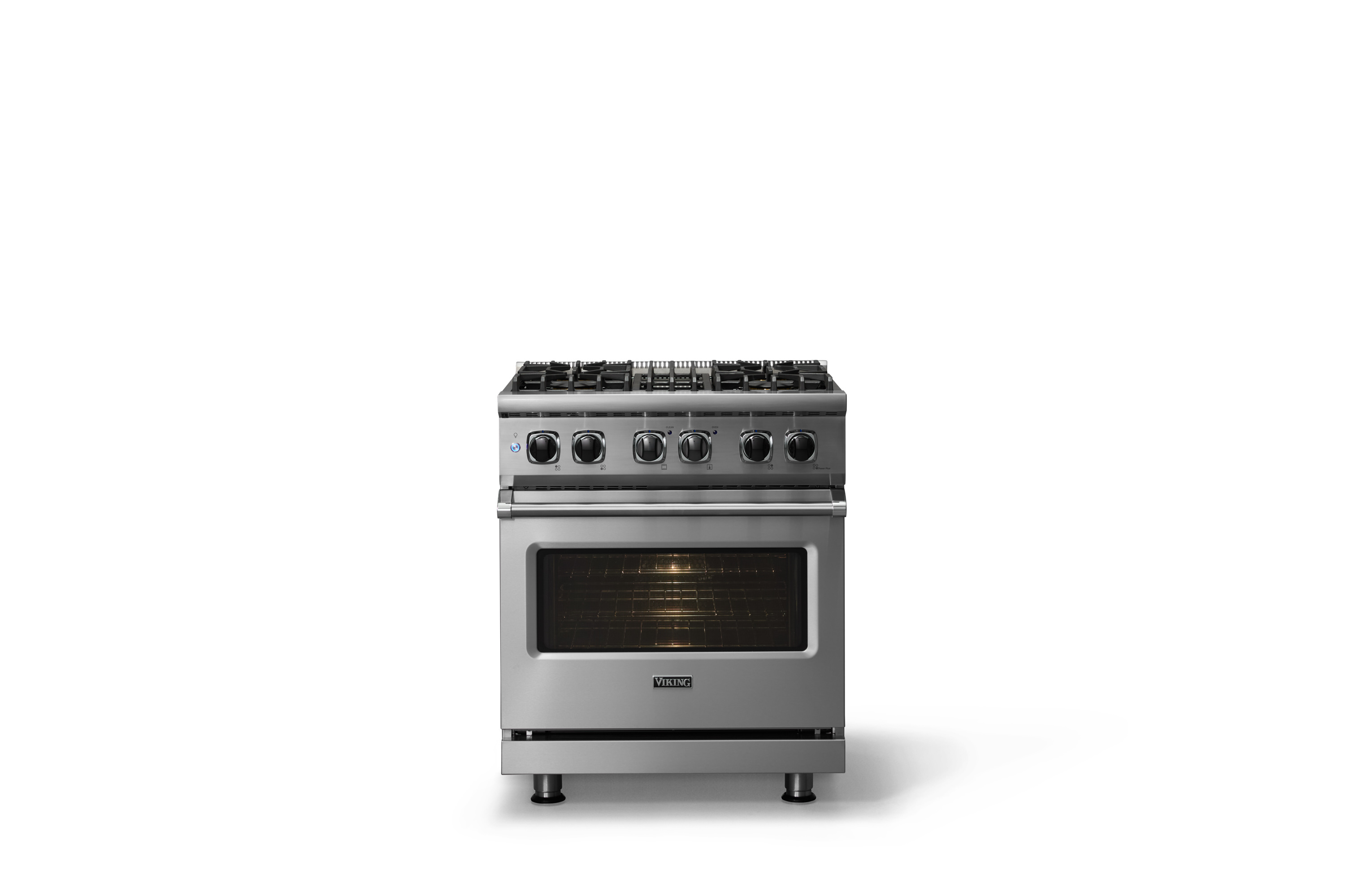 The brand Viking VDR5304BSS is a high-performance 30‑inch dual‑fuel range engineered for serious home chefs. Equipped with four powerful VSH™ sealed burners, including a high-output front burner, it delivers precise flame control for simmering, sautéing, and searing. The roomy 4.0 cu ft ProFlow™ convection oven ensures even baking and roasting across multiple racks, while continuous cast‑iron grates allow seamless cookware movement on the cooktop. Professional-grade features such as SureSpark™ ignition, polished stainless steel control knobs, and a durable stainless exterior elevate both performance and aesthetics. Designed for ease of use and lasting quality, the VDR5304BSS combines chef-worthy capability with timeless design.