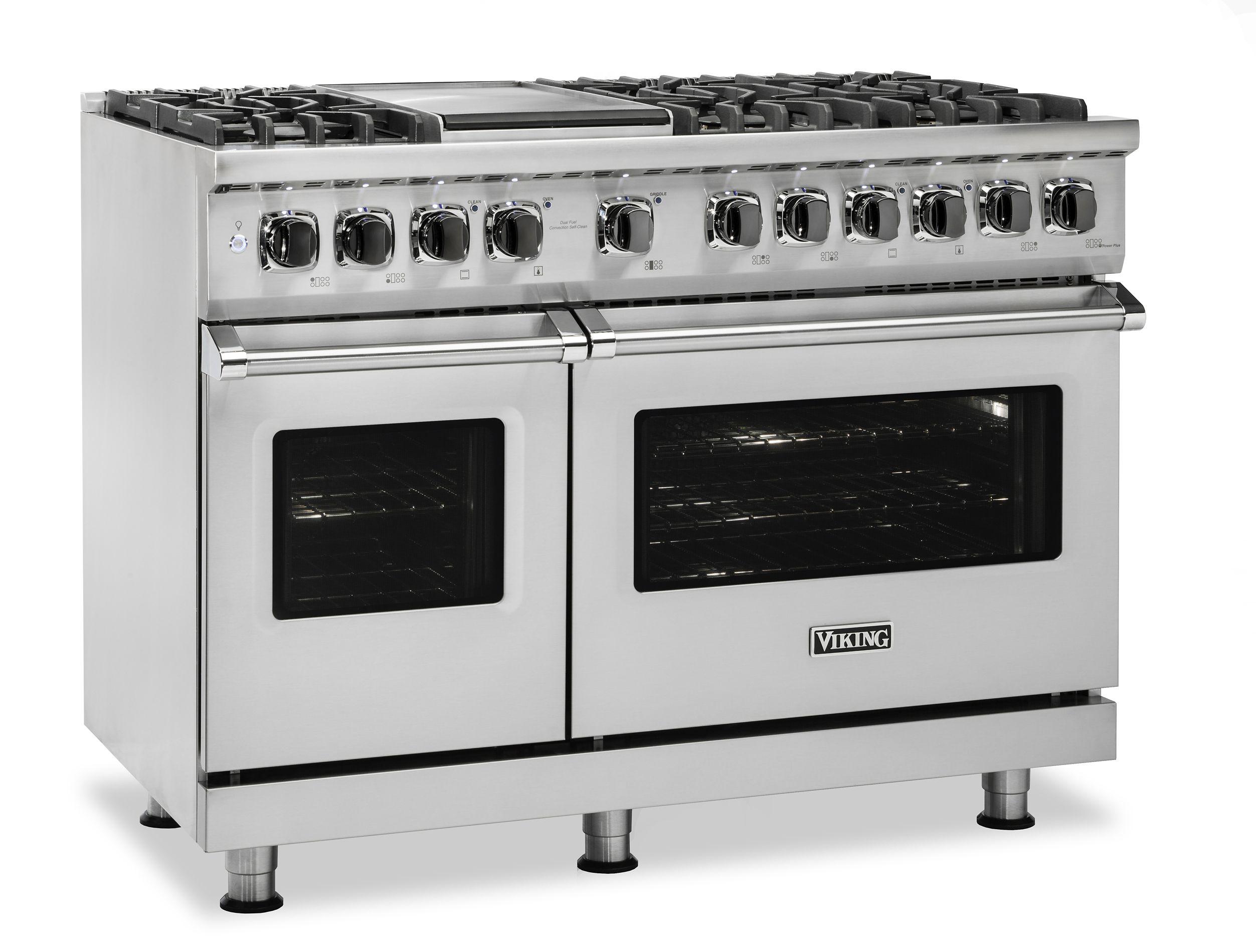 The brand Viking VDR5488BSSLP is a high-capacity 48‑inch dual fuel range in classic Stainless Steel. It offers eight sealed burners with VariSimmer™, dual ProFlow convection-capable ovens with self-clean, infrared broiler, continuous cast-iron grates, halogen lighting, hidden bake elements, SureSpark ignition, and LP/NG convertible setup—built to meet the demands of serious culinary spaces.