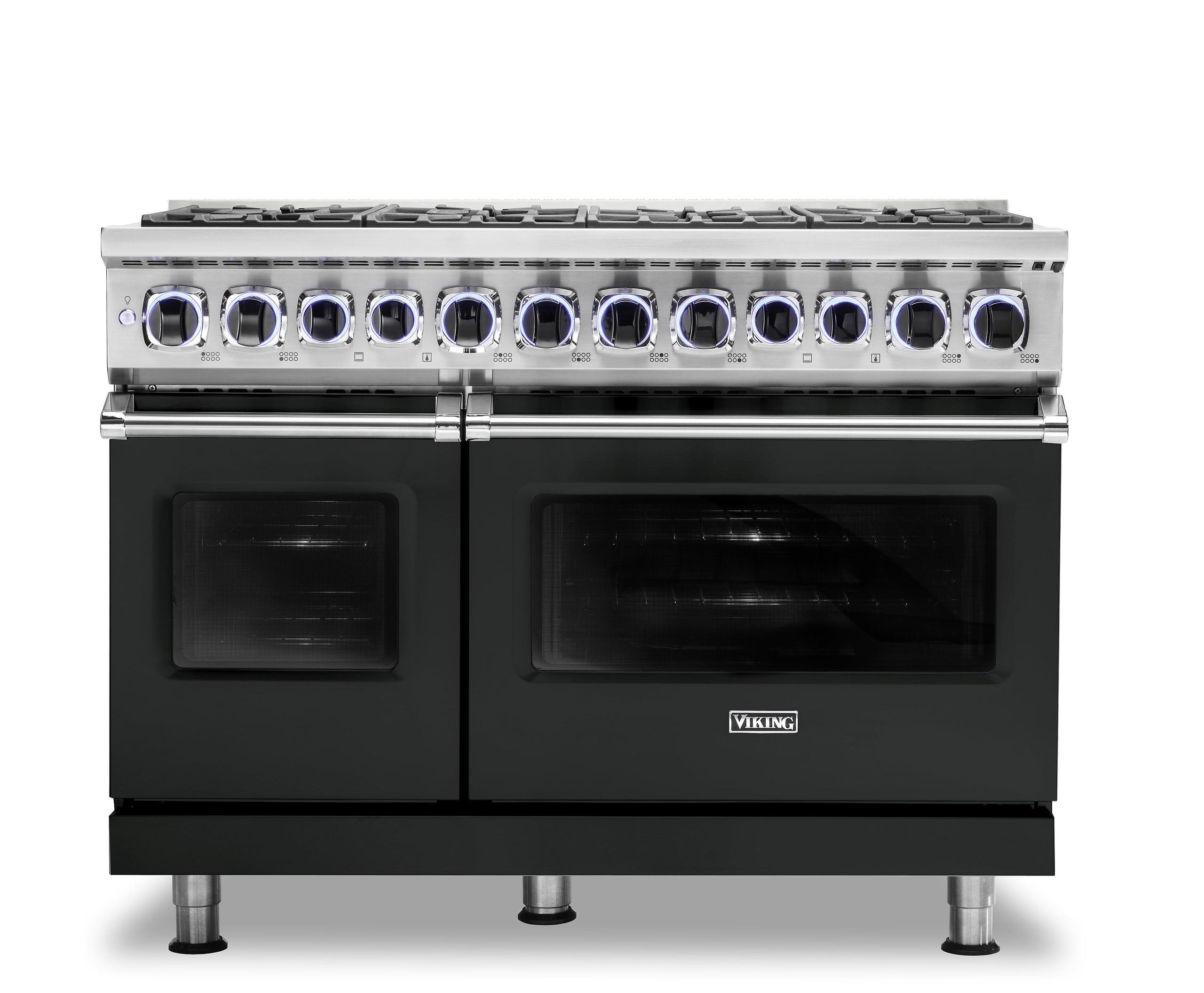 The brand Viking VDR74828BAN combines commercial-grade design and versatility. It offers eight Elevation™ sealed burners with VariSimmer™ control and a central ViChrome™ griddle. Dual electric convection ovens equipped with TruConvec™ airflow, Rapid Ready™ preheat, self-clean cycles, and Gourmet‑Glo™ infrared broilers deliver exceptional baking and broiling performance. With continuous cast-iron grates, SureSpark™ ignition, TruGlide™ racks, GentleClose™ doors, and SoftLit™ LED knob lighting—all wrapped in elegant stainless steel—this range brings professional cooking to home kitchens.
