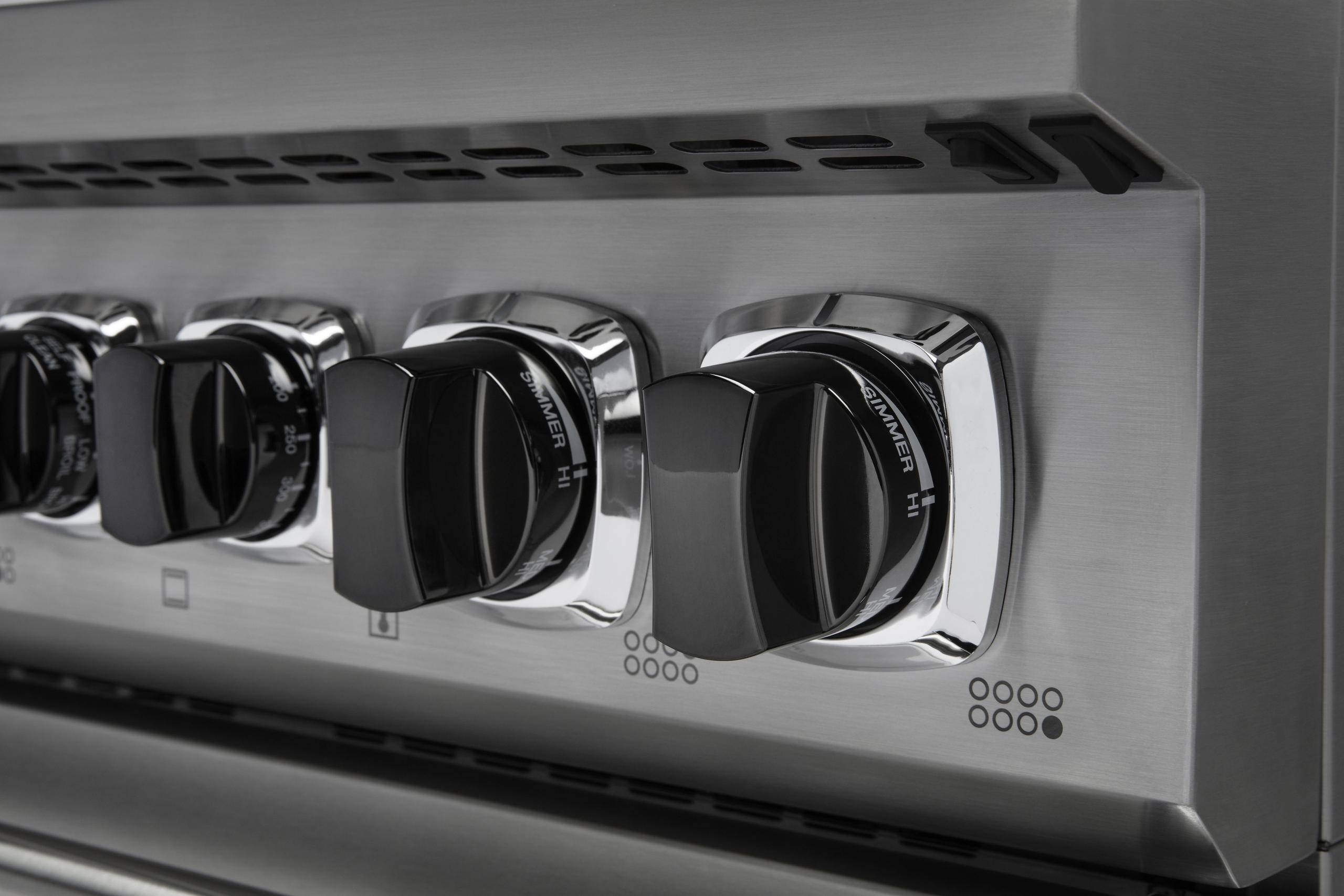 The brand Viking VDR74828BMA merges power and elegance in a 48‑inch dual fuel format. It includes eight Elevation™ sealed burners with VariSimmer™ control, a central ViChrome™ griddle for flat-top cooking, and dual electric convection ovens with TruConvec™ airflow, Rapid Ready™ preheat, self-clean cycles, and Gourmet‑Glo™ infrared broilers. Continuous cast‑iron grates, SureSpark™ ignition, TruGlide™ racks, GentleClose™ doors, and SoftLit™ LED knob lighting, all in stainless steel, offer a premium cooking experience that excels in both style and performance.
