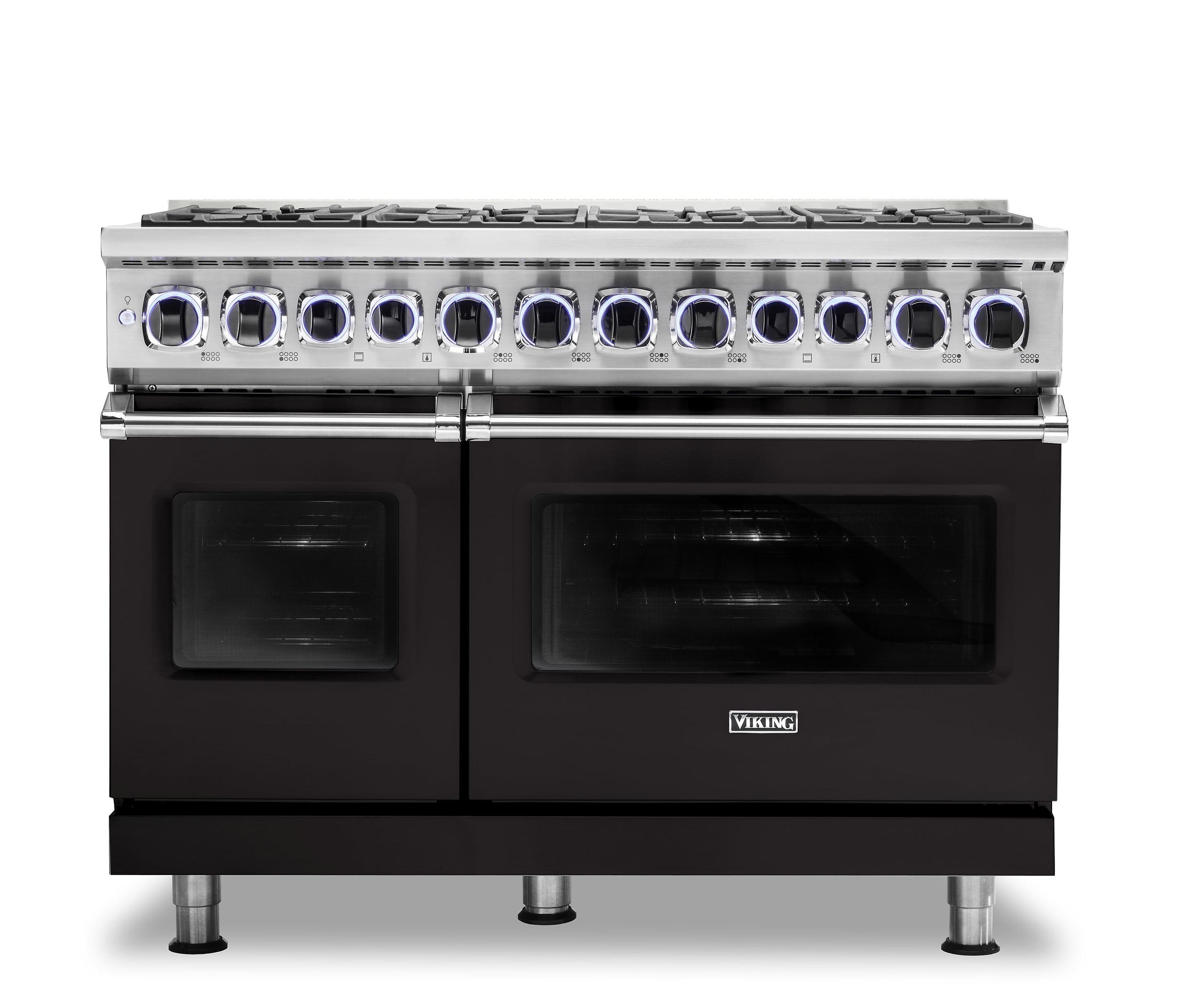 The brand Viking VDR74828BON blends culinary power and elegance in a 48‑inch freestanding range. It includes eight Elevation™ sealed burners and a central ViChrome™ griddle for versatile stovetop cooking. Dual electric convection ovens with TruConvec™ airflow, Rapid Ready™ preheat, self-clean, and Gourmet‑Glo™ infrared broilers deliver consistent baking and searing. Continuous cast‑iron grates, SureSpark™ ignition, TruGlide™ racks, GentleClose™ doors, and SoftLit™ LED knob lighting round out this professional-grade stainless steel centerpiece.