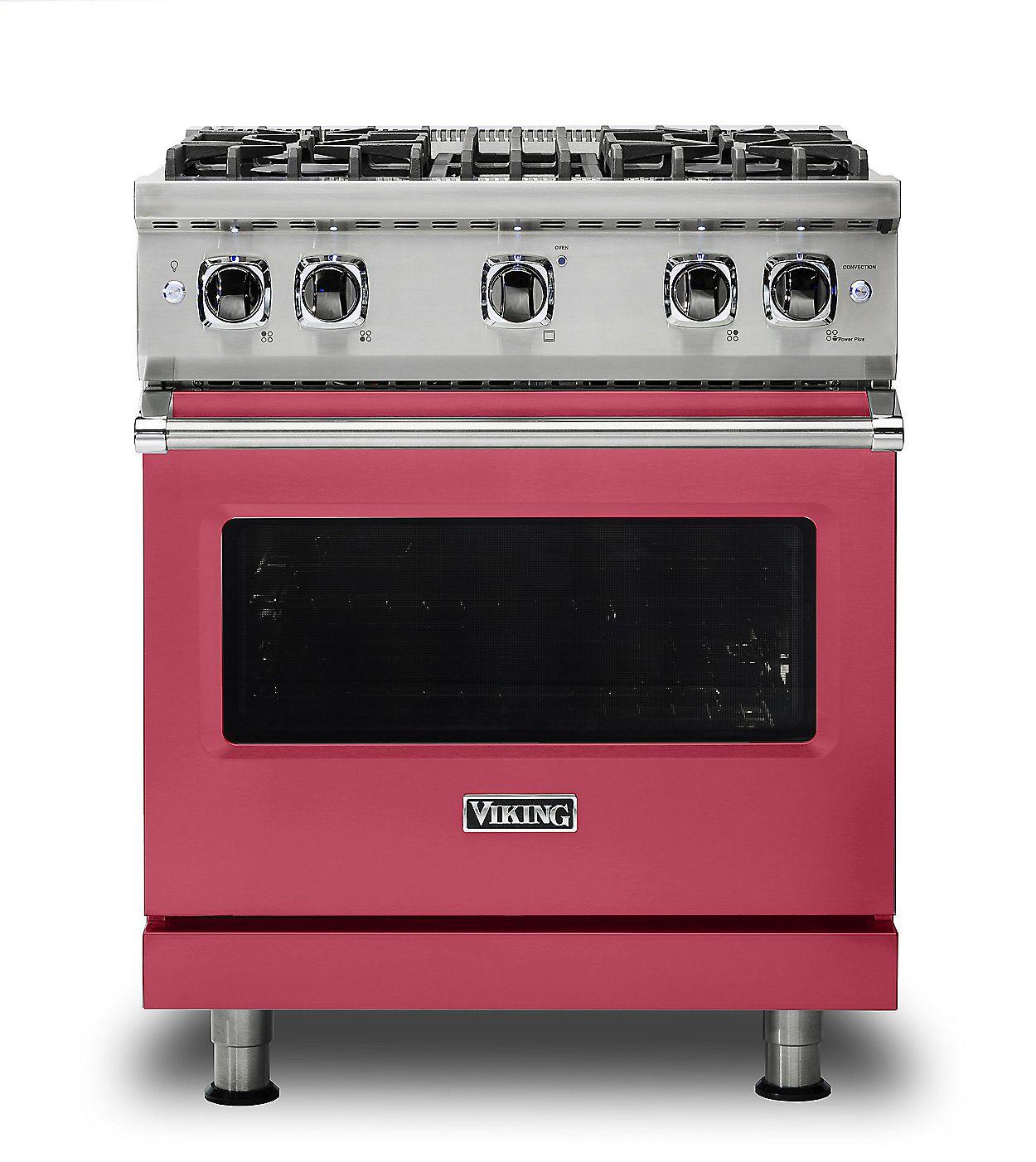 The brand Viking VGR5304BVA brings commercial-grade performance into the home with this 30 Inch Freestanding Professional Gas Range. Outfitted with 4 sealed burners using the VSH™ Pro Sealed Burner System, it delivers up to 18,500 BTUs for rapid boiling and high-heat cooking, along with gentle simmering. The spacious 4.0 cu. ft. oven offers consistent heat and dependable results, ideal for baking, roasting, and broiling. Continuous cast-iron grates make it easy to move pots and pans across burners. Finished in a vibrant Valentine color and built for liquid propane use, this range blends function and flair to elevate any kitchen.