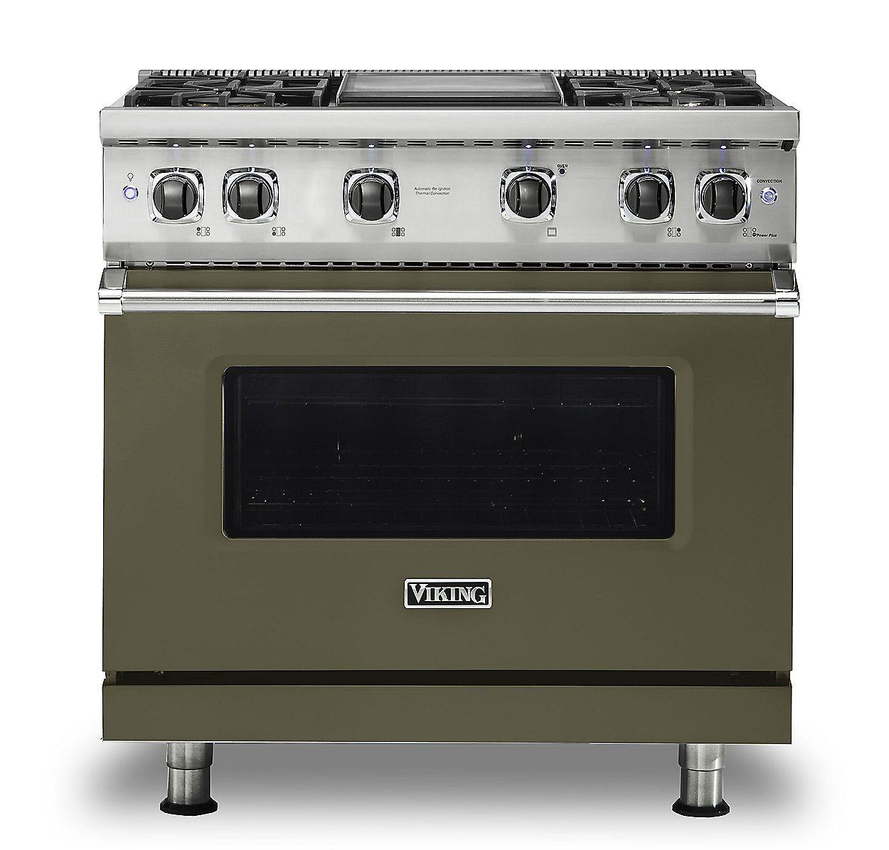 The brand Viking VGR5364GMALP is a chef‑grade 36‑inch gas range from the 7 Series, delivering powerful cooking in a compact footprint. It includes four open burners—two 22,000 BTU high‑output burners and two simmer burners—paired with continuous cast‑iron grates for seamless cookware transit. A versatile 12‑inch griddle accessory allows flat‑top cooking. Below, the spacious 5.1 cu ft convection oven with TruConvec™ circulation, 30,000 BTU U‑shaped burner, and Gourmet‑Glo™ infrared broiler ensures even baking and searing. Additional chef-inspired features include SureSpark™ ignition, TruGlide™ racks, GentleClose™ door, and SoftLit™ LED knob lighting—wrapped in sleek matte black for a modern, professional aesthetic.