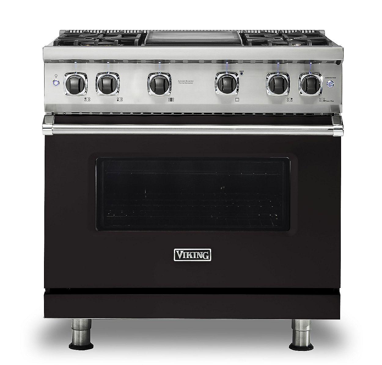 The brand Viking VGR5364GONLP delivers commercial-quality results with this 36" LP Gas Range in Graphite Gray. It includes four sealed burners and a 12" wide griddle for versatile stovetop cooking. The large-capacity oven features convection baking for even heat distribution and faster results. Durable construction, continuous grates, and BlackChrome™ knobs combine performance and aesthetics in a premium kitchen appliance.