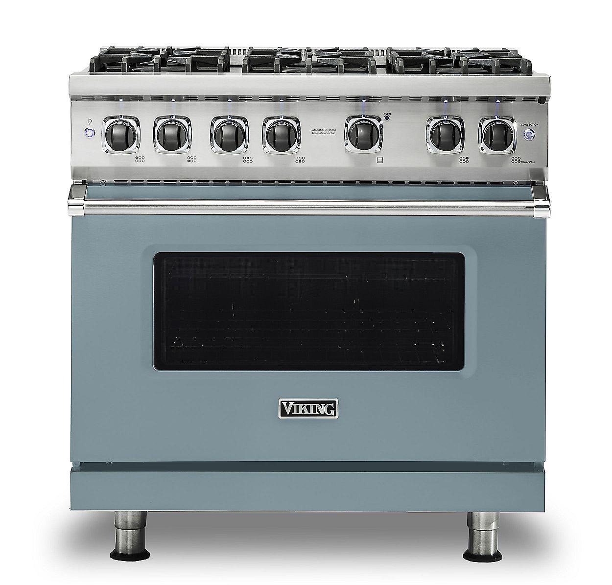The Viking VGR5366BNSLP is a professional-grade 36 Inch Freestanding Professional Gas Range crafted to elevate gourmet cooking experiences in residential kitchens. Featuring 6 VSH™ Pro Sealed Burners delivering up to 18,500 BTU each, this range provides powerful, even heat for versatile culinary techniques. The generous 5.1 cu. ft. convection oven ensures uniform baking and roasting results, while continuous porcelain-coated grates support effortless movement of cookware across the cooktop. Designed with automatic electric ignition and re‑ignition, it ensures safe and reliable start-ups. The unit’s striking Stainless steel finish with blue porcelain accents adds professional flair and aesthetic appeal. With Precision Temperature Control, Cool‑Lit™ LED oven lighting, and robust construction, the VGR5366BNSLP combines chef-level performance and resilient design for the modern culinary enthusiast.